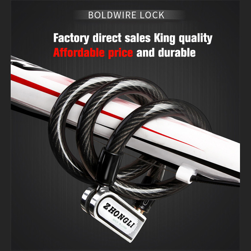 ZHONGLI自行车锁电动车锁电瓶车钢缆锁便携防盗锁链条锁单车锁