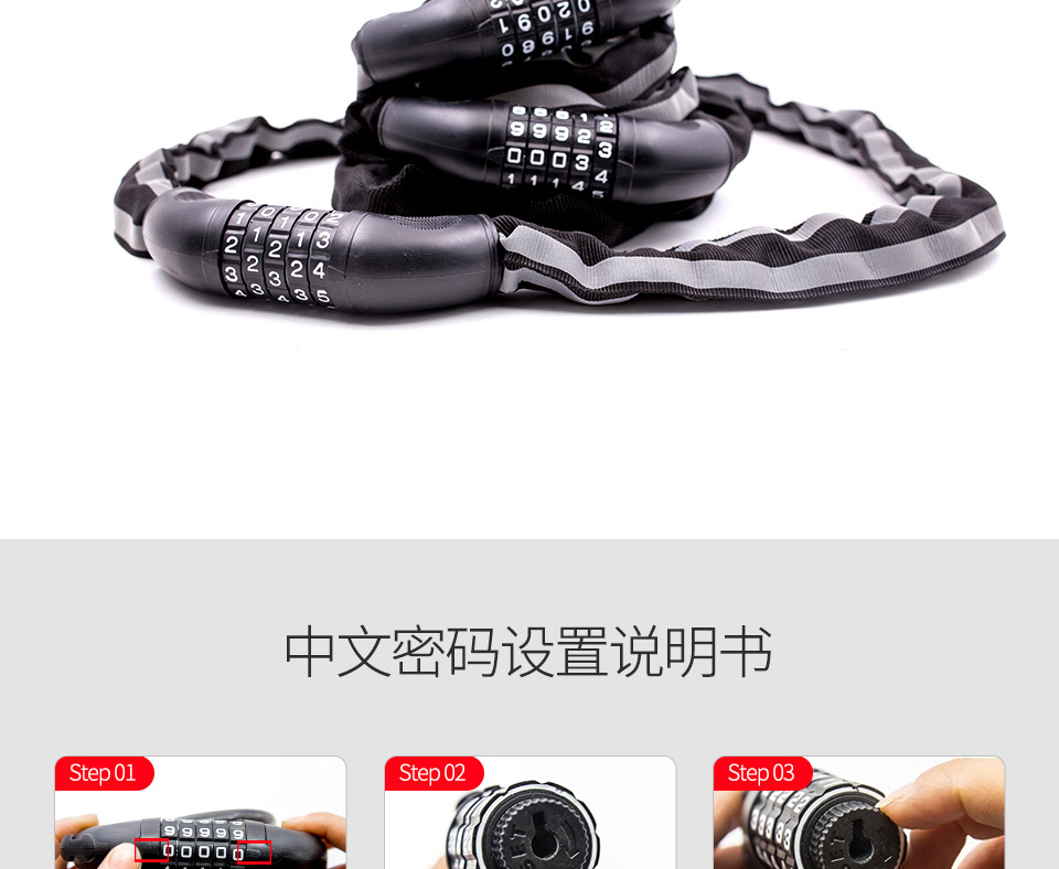 自行车锁防盗山地车锁链条铁链锁电动车锁摩托拉门玻璃门锁BCL1-5