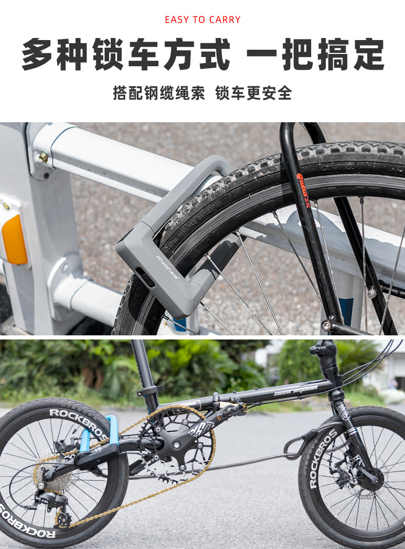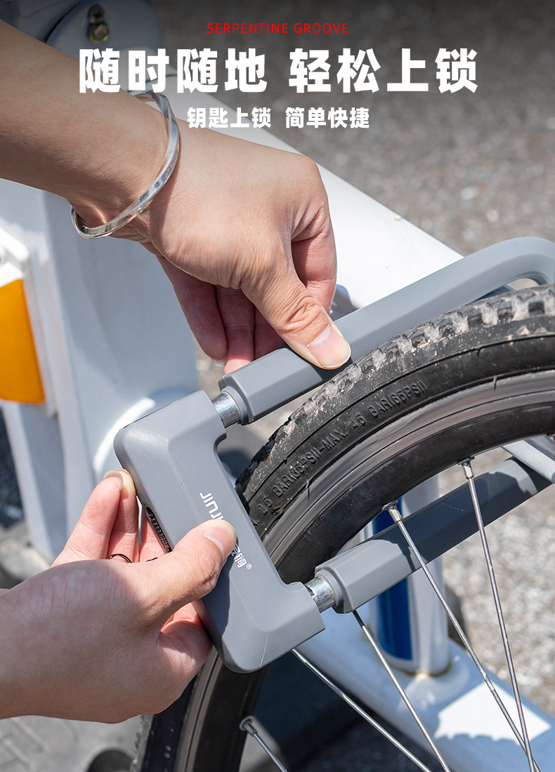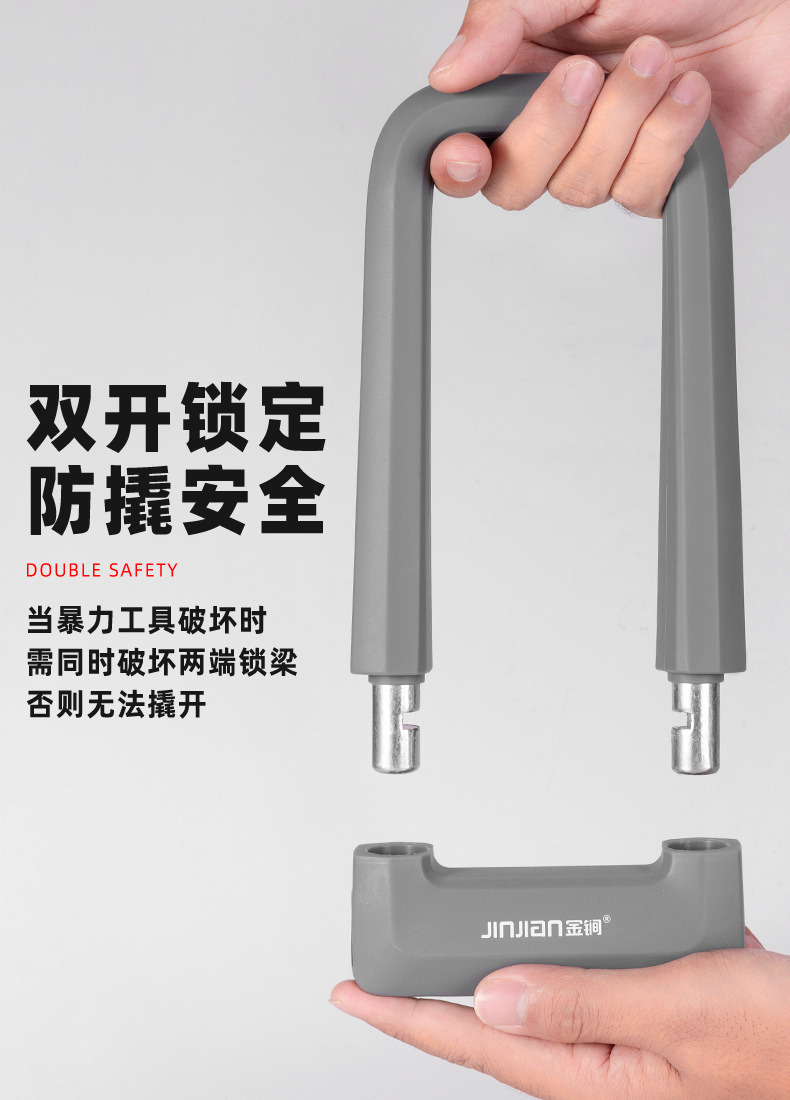大院门锁自行车锁硅胶U型锁抗液压剪防盗锁摩托车电动车U形单车锁