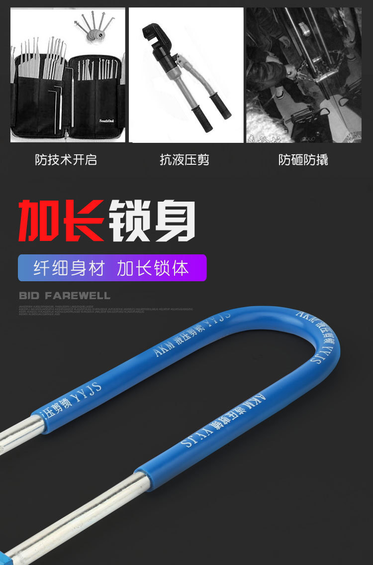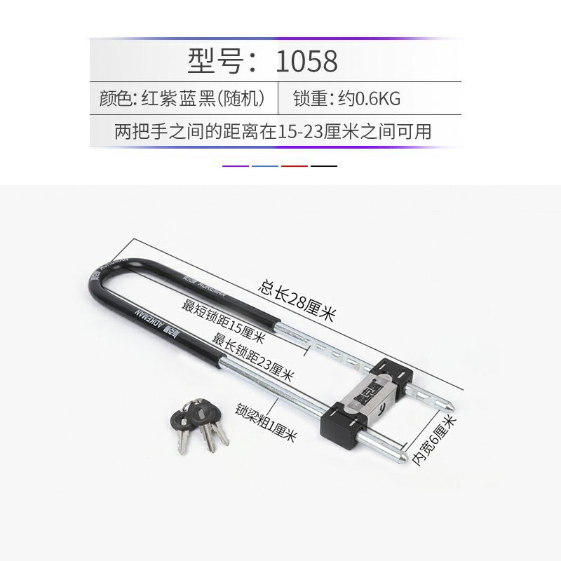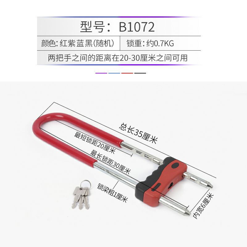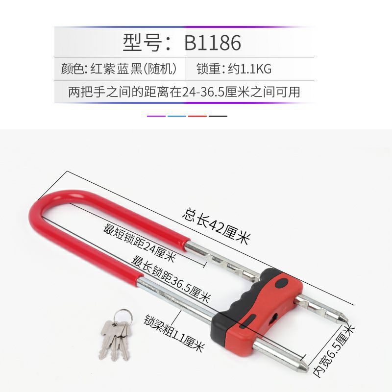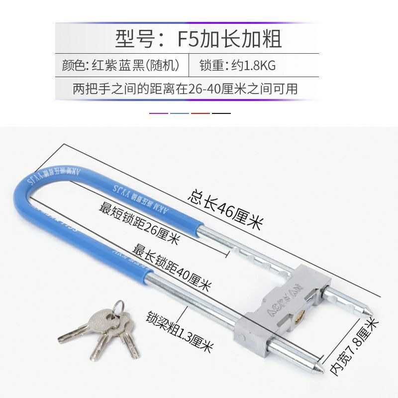 玻璃门锁插锁摩托车锁电动车锁加长U型锁店铺锁双门拉手锁奥克欣