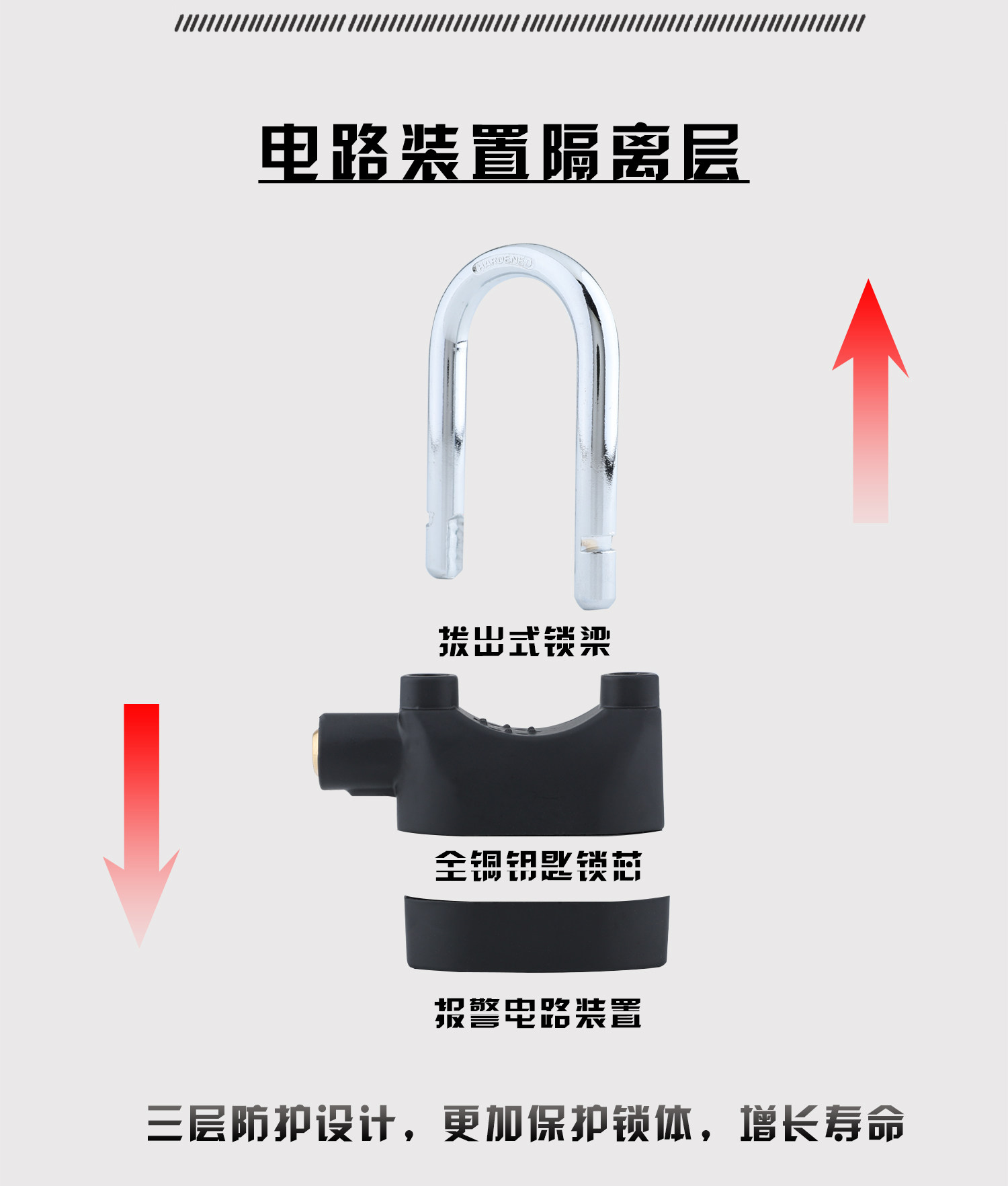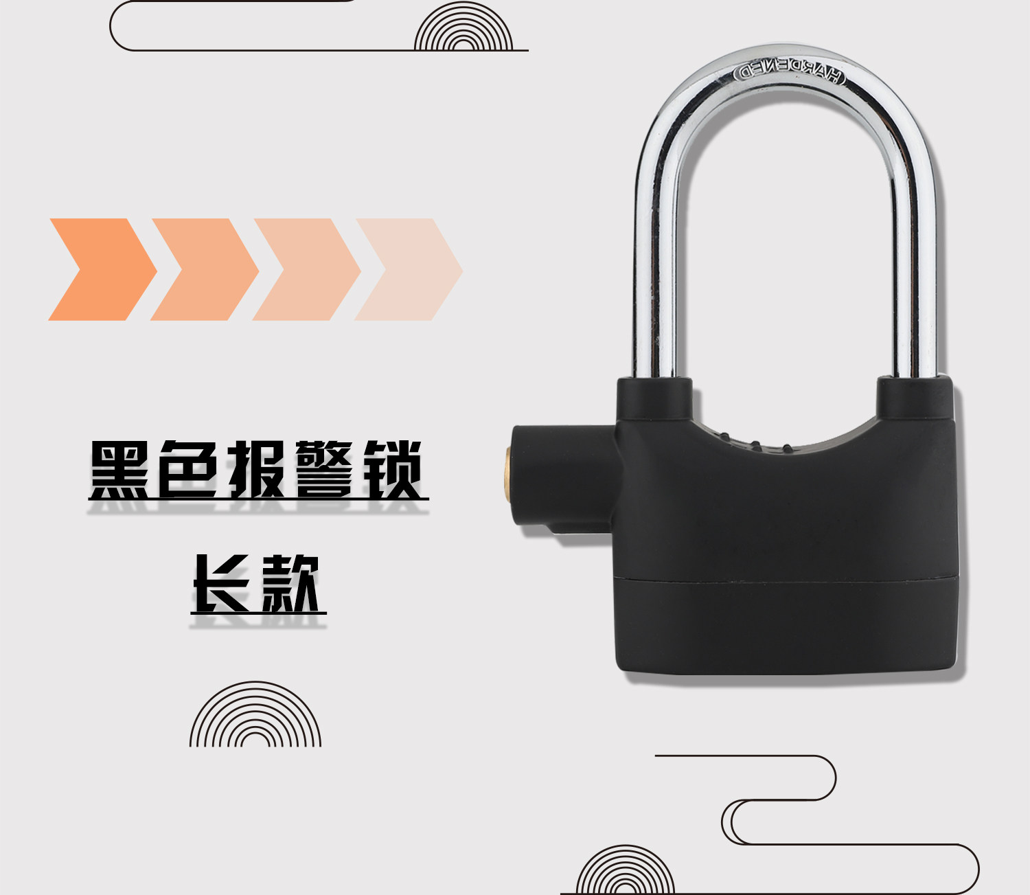 OD59批发防盗报警锁挂锁摩托车锁电动自行车锁户外大门锁防水防撬