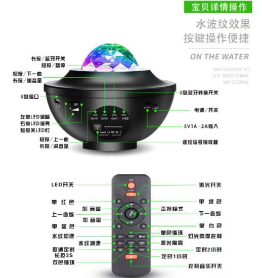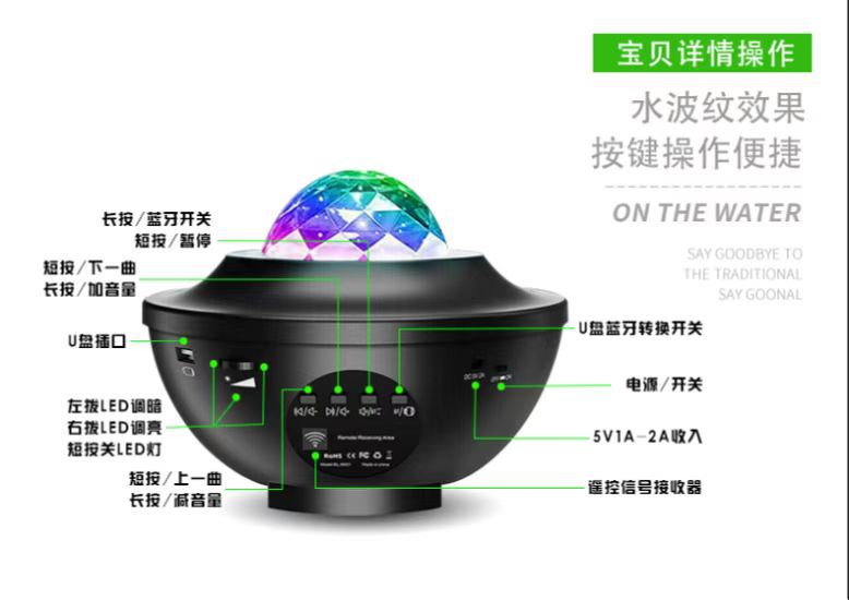 新款 LED星空投影灯usb遥控蓝牙音乐水纹星空灯激光灯圣诞灯小夜