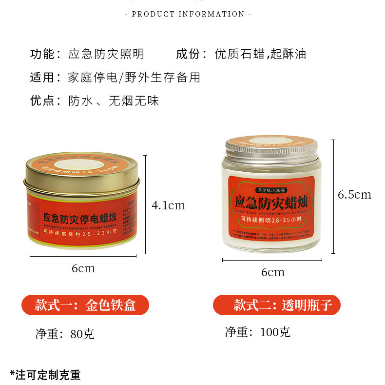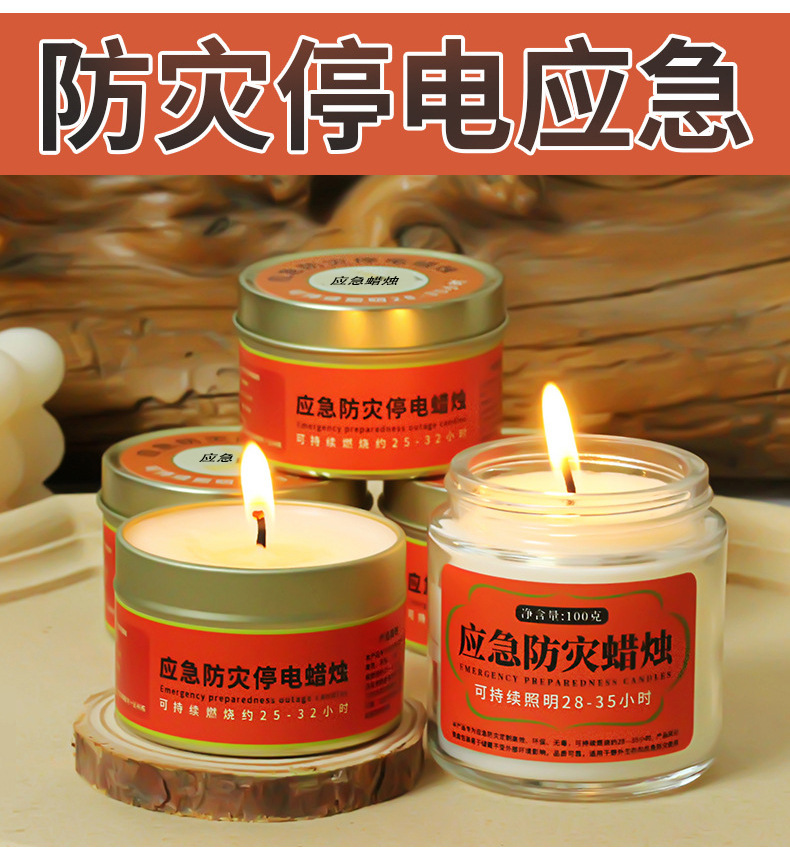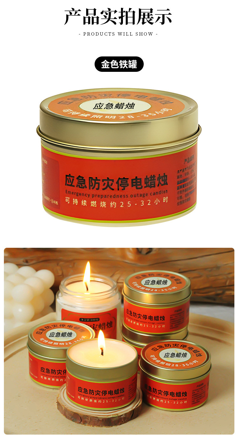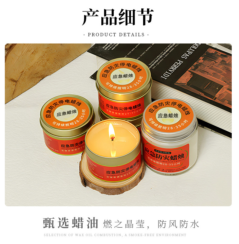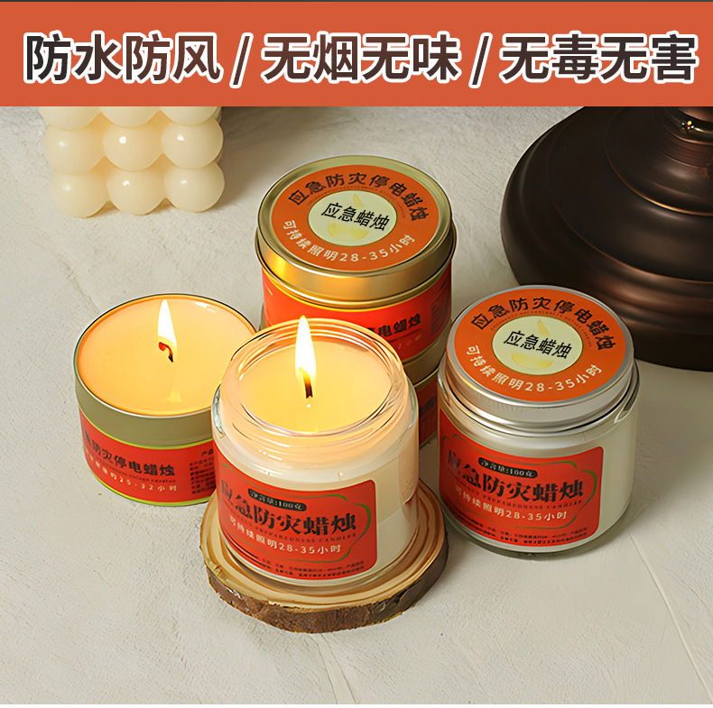应急防灾家用照明停电蜡烛户外防风防水无烟蜡烛铁罐装蜡烛批发