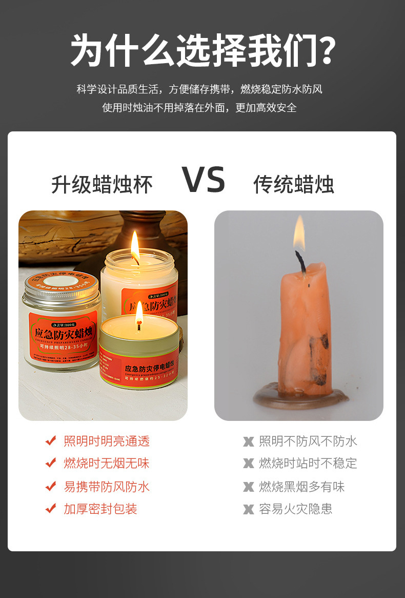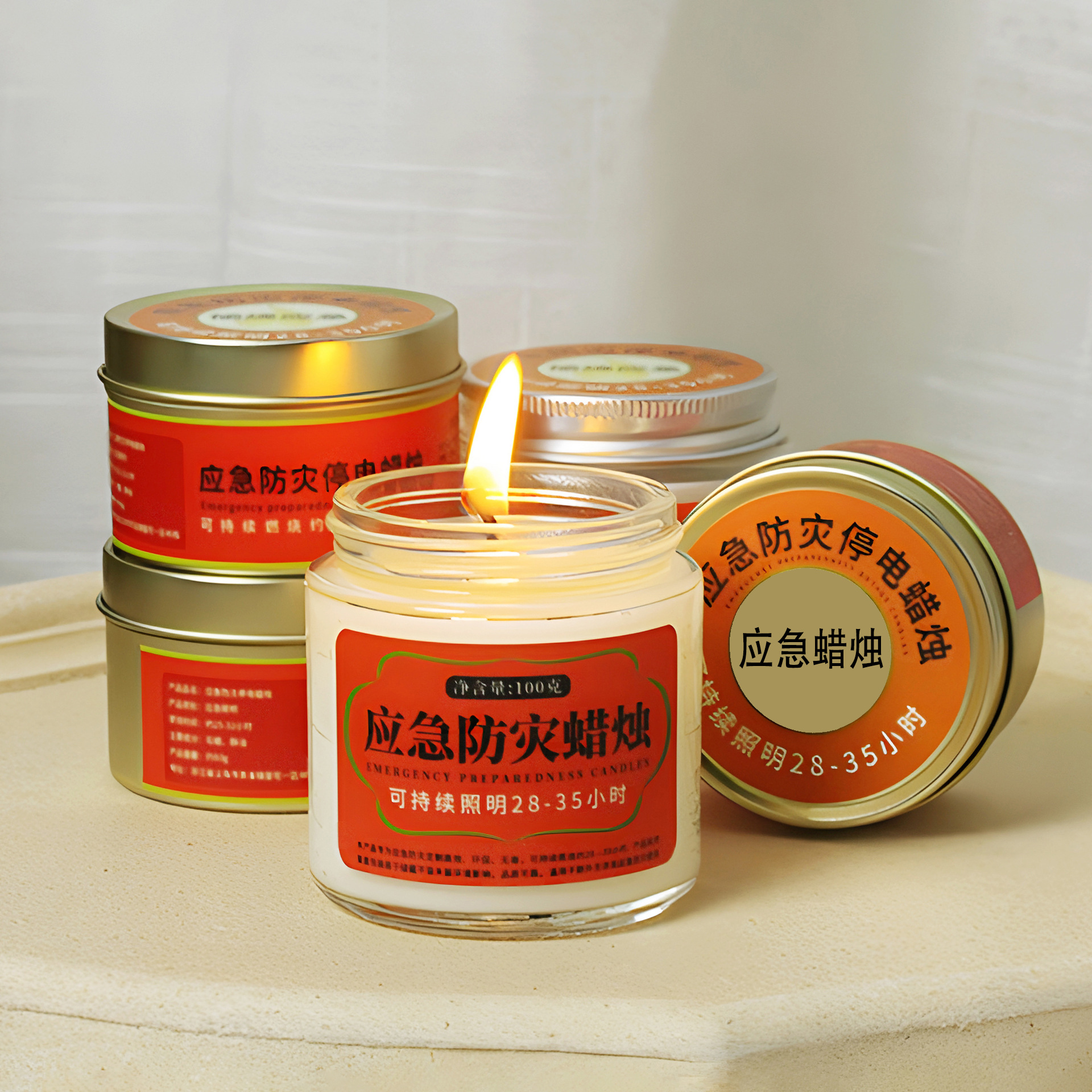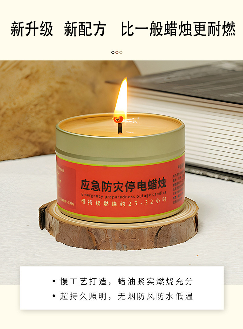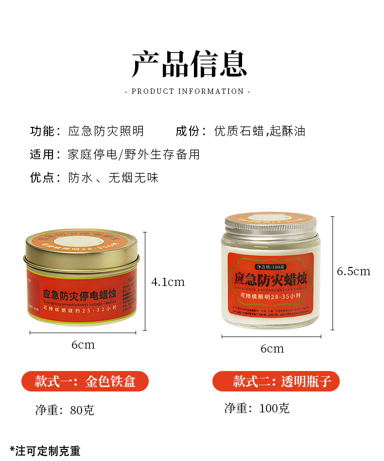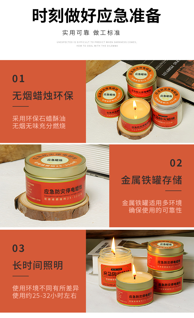 应急防灾家用照明停电蜡烛户外防风防水无烟蜡烛铁罐装蜡烛批发