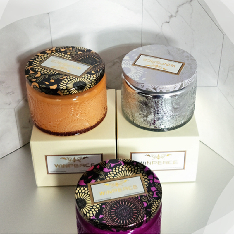 ins风跨境浮雕玻璃杯手工香薰蜡烛 浪漫生日创意大豆蜡伴手礼批发