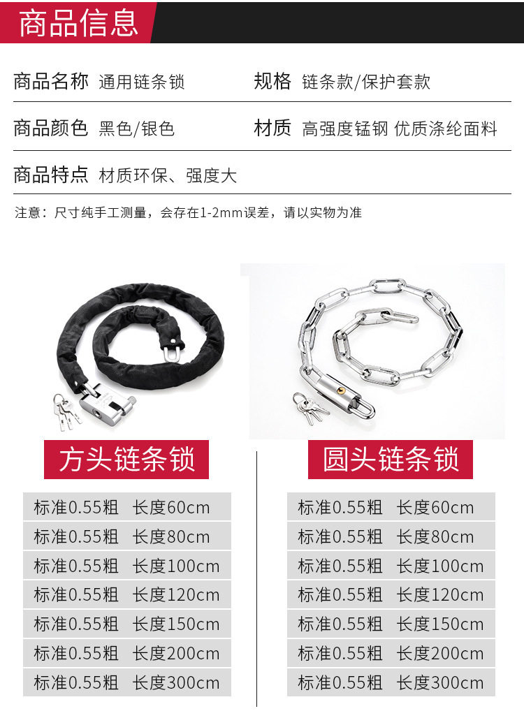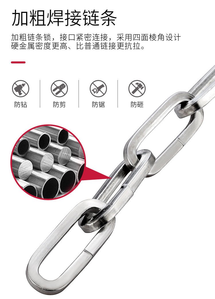 SI6K玻璃门锁链条锁大门铁链锁自行车锁钢丝防盗电动车防水环形链