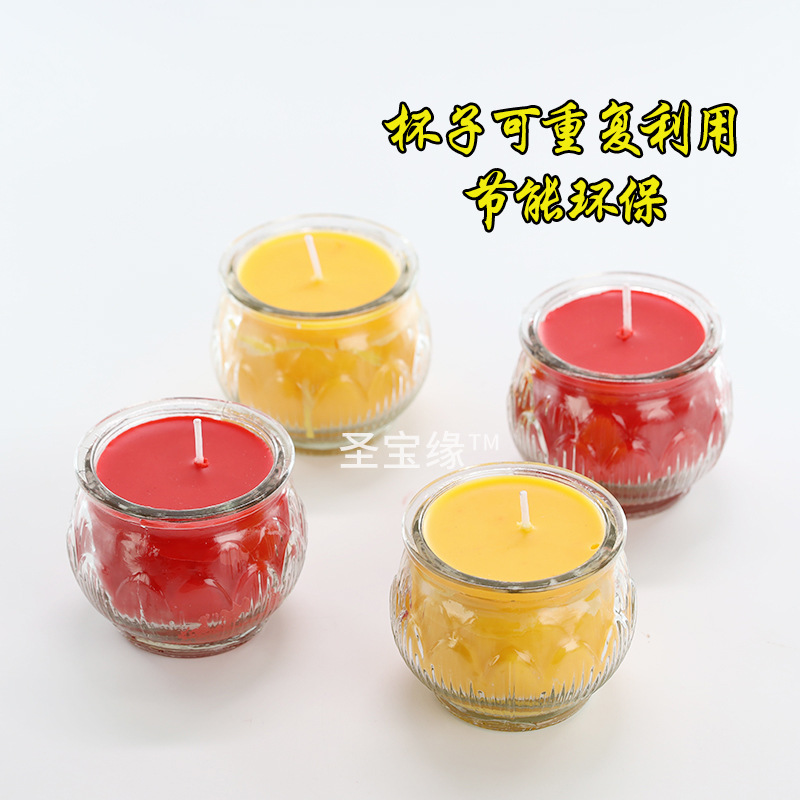 蜡烛24小时48盏平口莲花酥油灯厂家直销家用玻璃长明灯对装蜡烛灯
