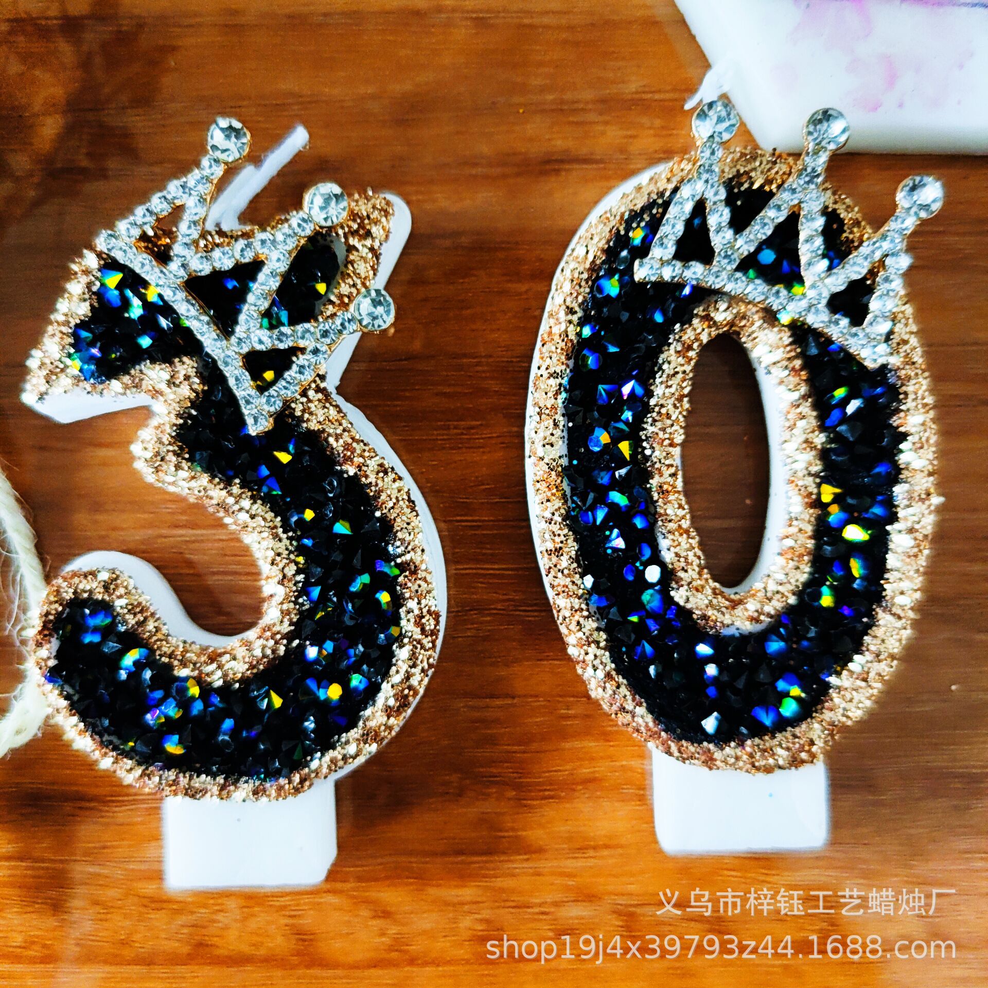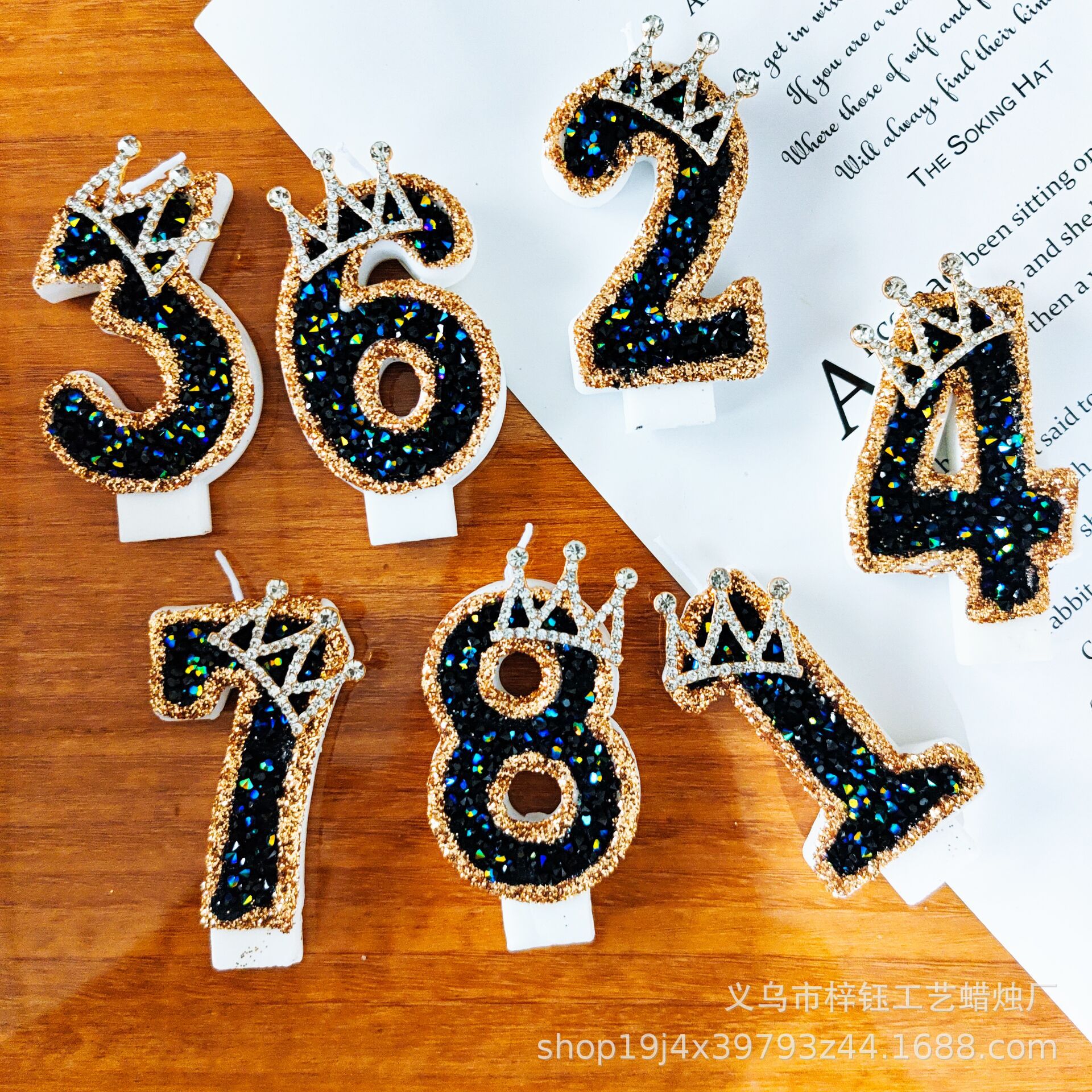 新款黑钻皇冠生日数字蜡烛亚马逊ins厂家直供蛋糕装饰派对用品