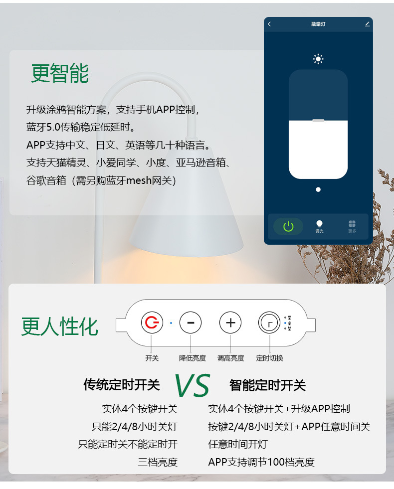 香薰融蜡灯定时北欧融烛升降扩香网红复古卧室床头灯手机APP遥控