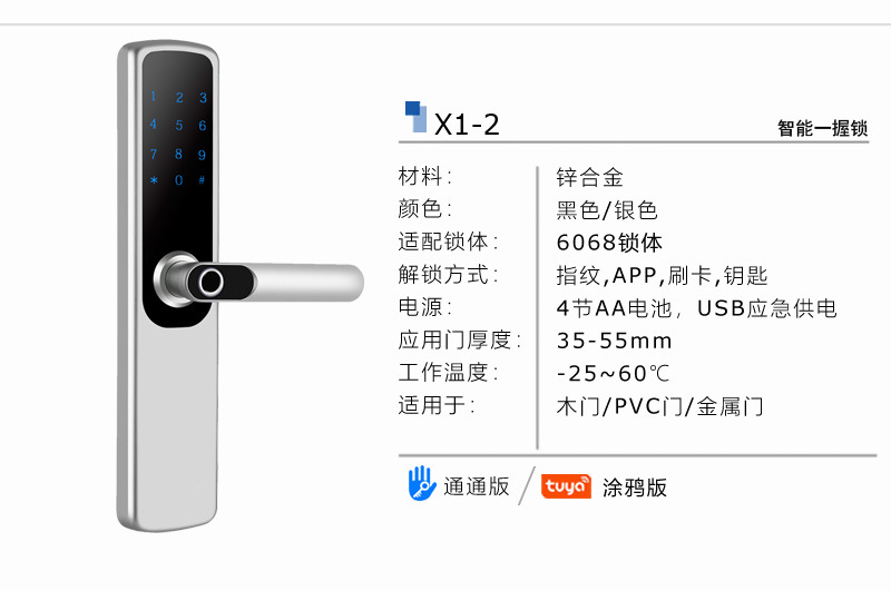 欧美热销智能指纹门锁入户门大锁涂鸦智能防盗门电子指纹锁家卫士