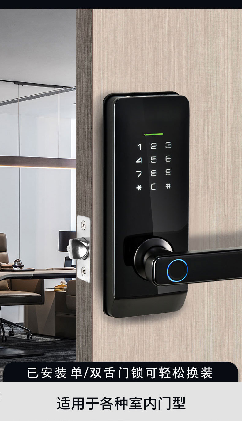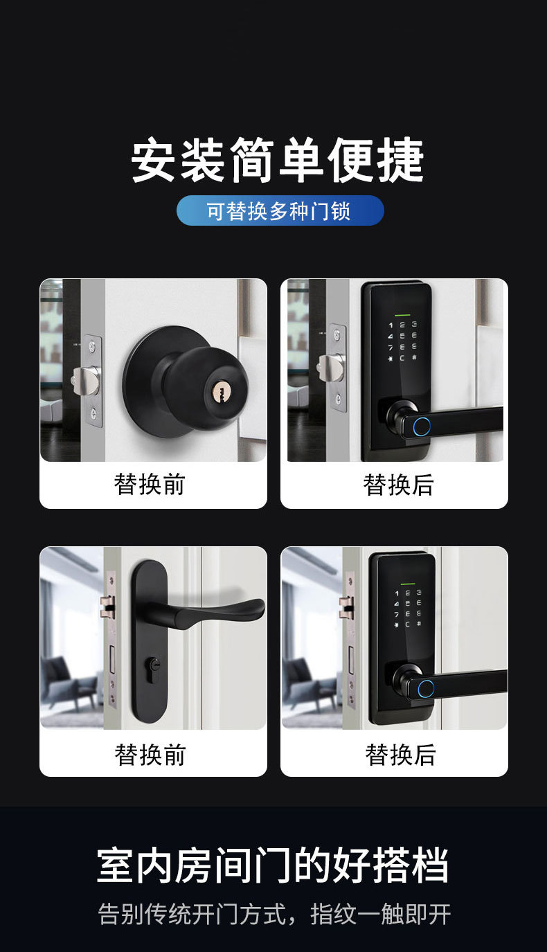 美式指纹锁房门办公室门公寓酒店门球形把手密码锁涂鸦通通智能锁