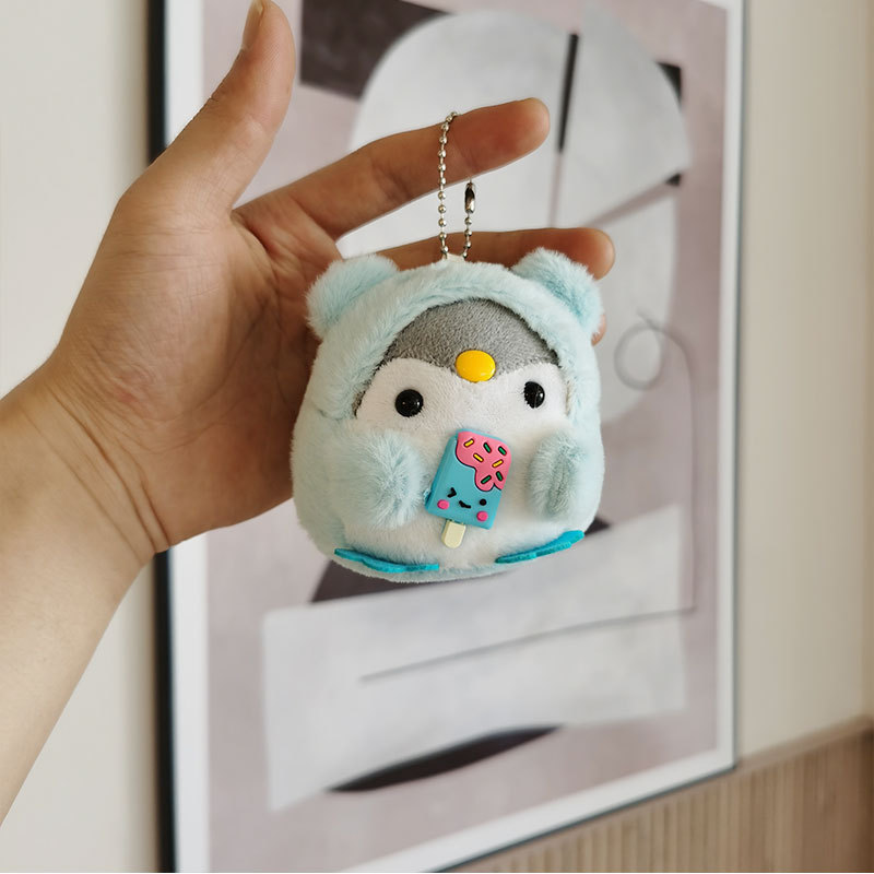 抖音同款雪糕棒棒糖企鹅毛绒钥匙扣包包挂件情侣公仔玩具玩偶批发