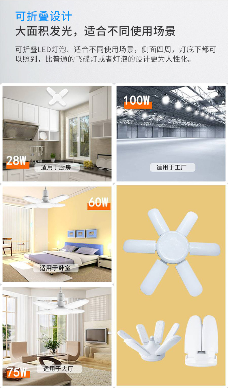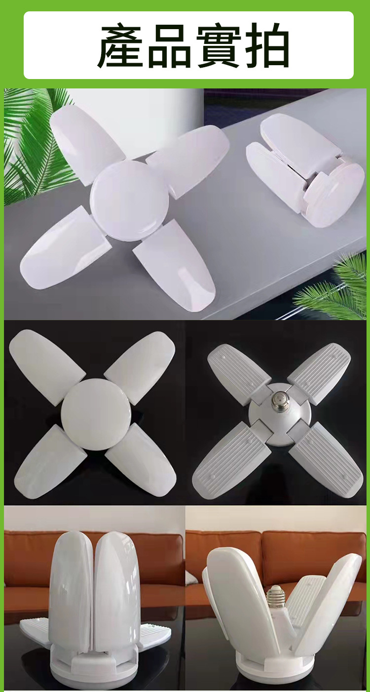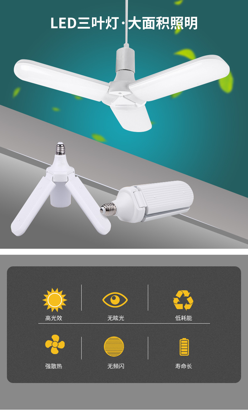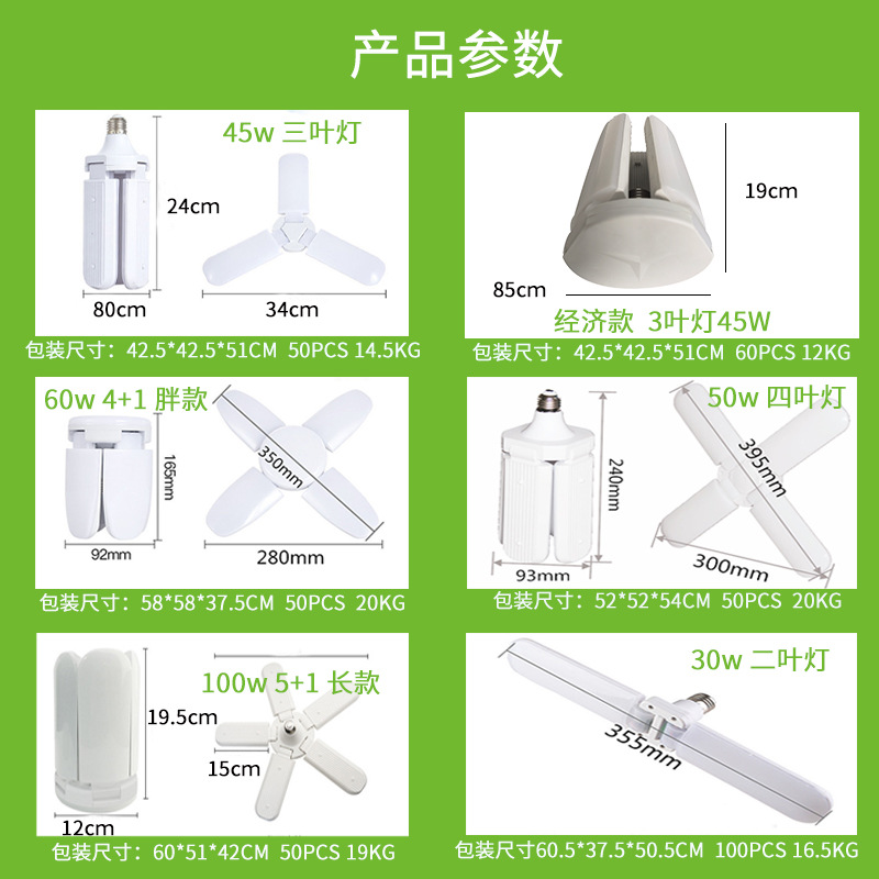 跨境叶子灯泡e27节能超亮45W 60W折叠三页五叶4叶车库灯led三叶灯