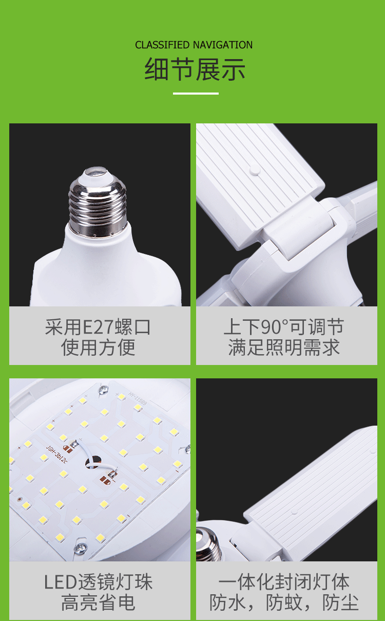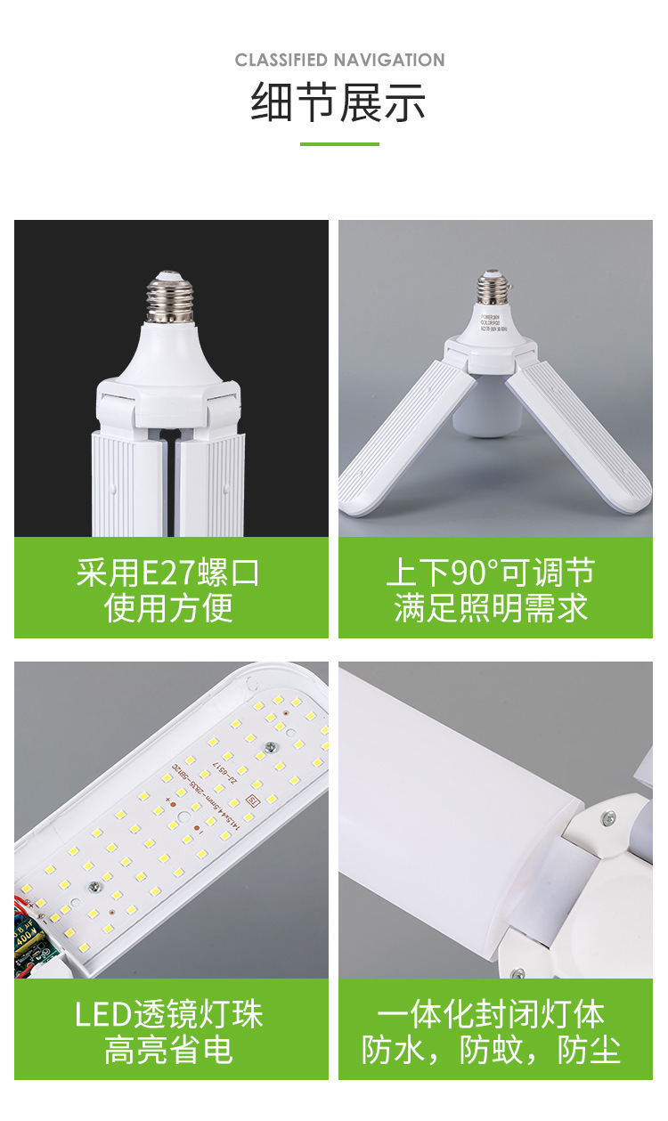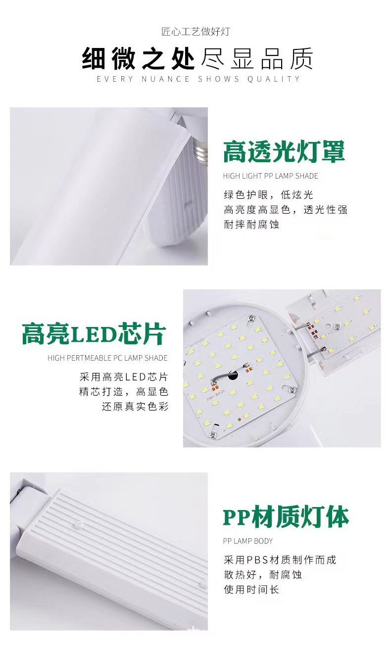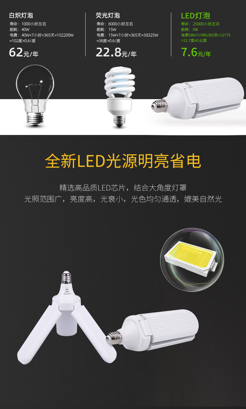 跨境叶子灯泡e27节能超亮45W 60W折叠三页五叶4叶车库灯led三叶灯