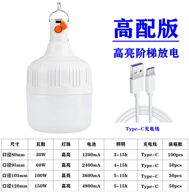 停电应急灯泡 led充电灯泡 夜市摆摊灯ubs充电地摊灯户外露营灯