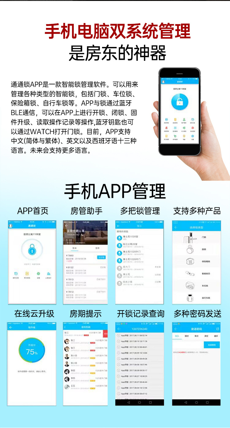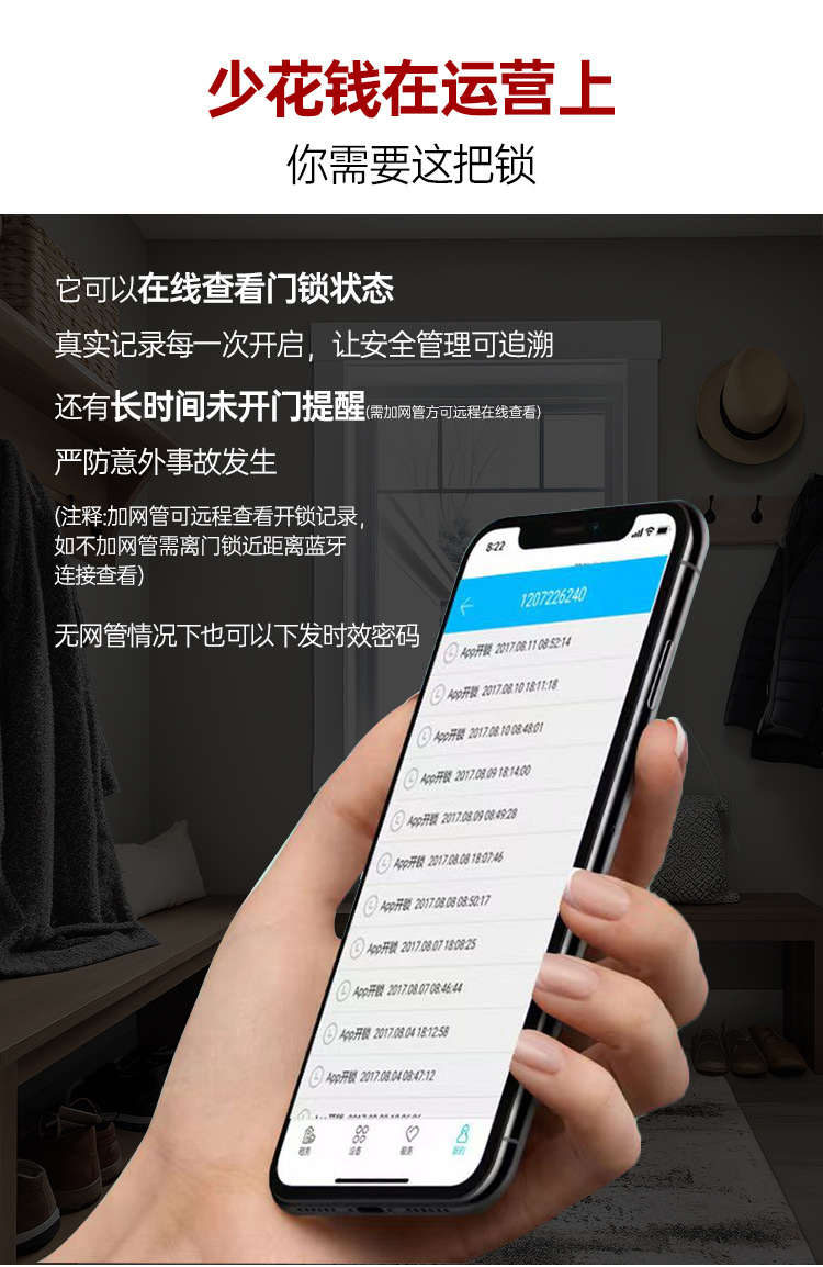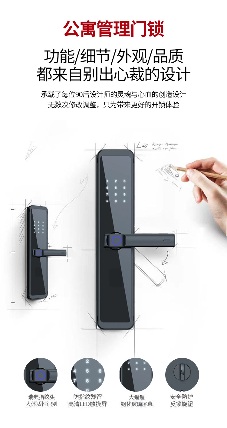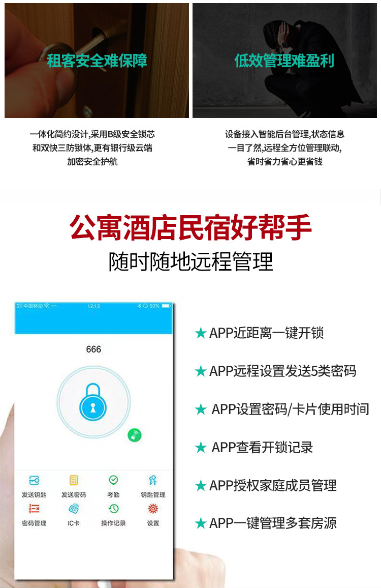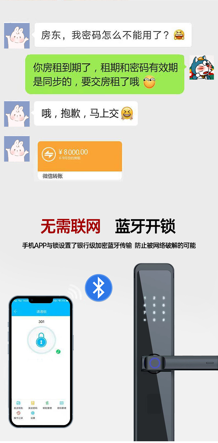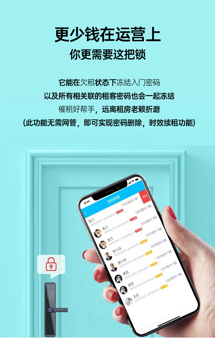 WF通通锁多功能APP蓝牙指纹密码锁家用公寓民宿出租房智能门锁