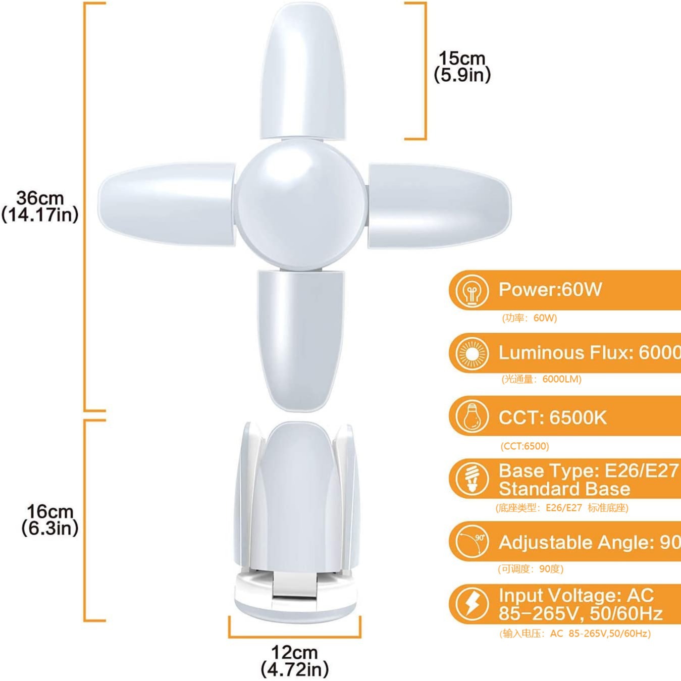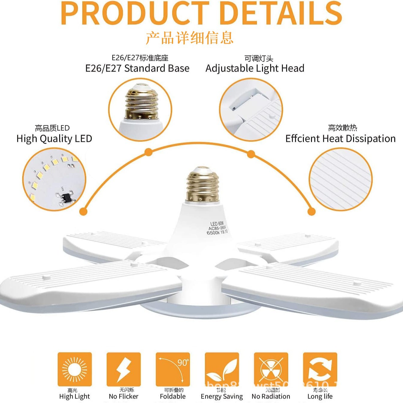 跨境LED车库灯五叶灯四叶灯折叠灯变形新款led车库灯外贸厂家直供