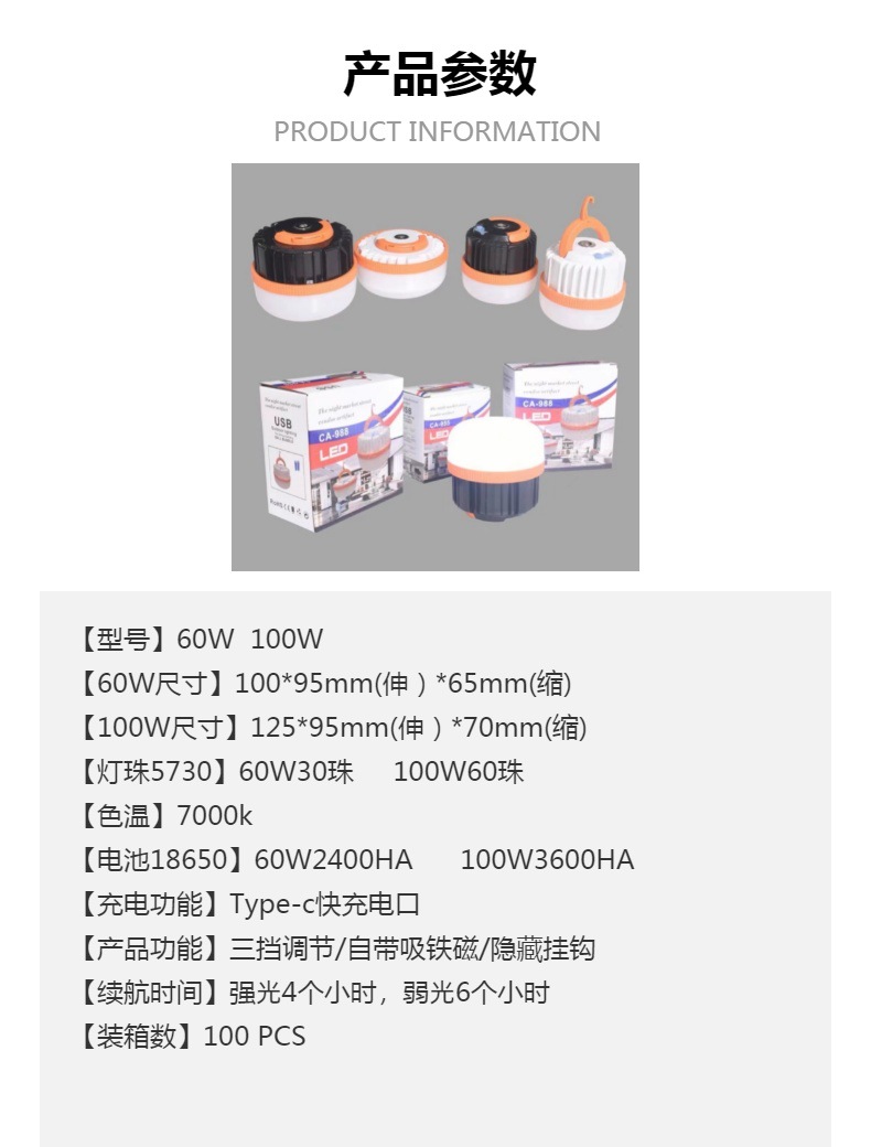 跨境新品led应急充电灯泡户外多功能USB充电夜市摆摊帐篷露营灯