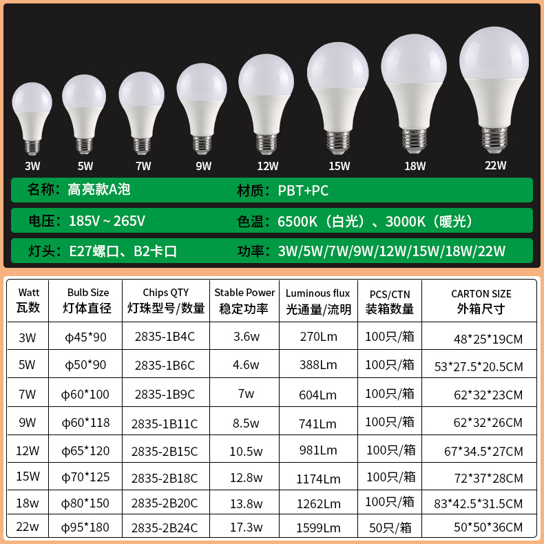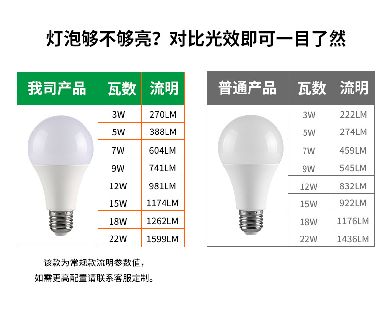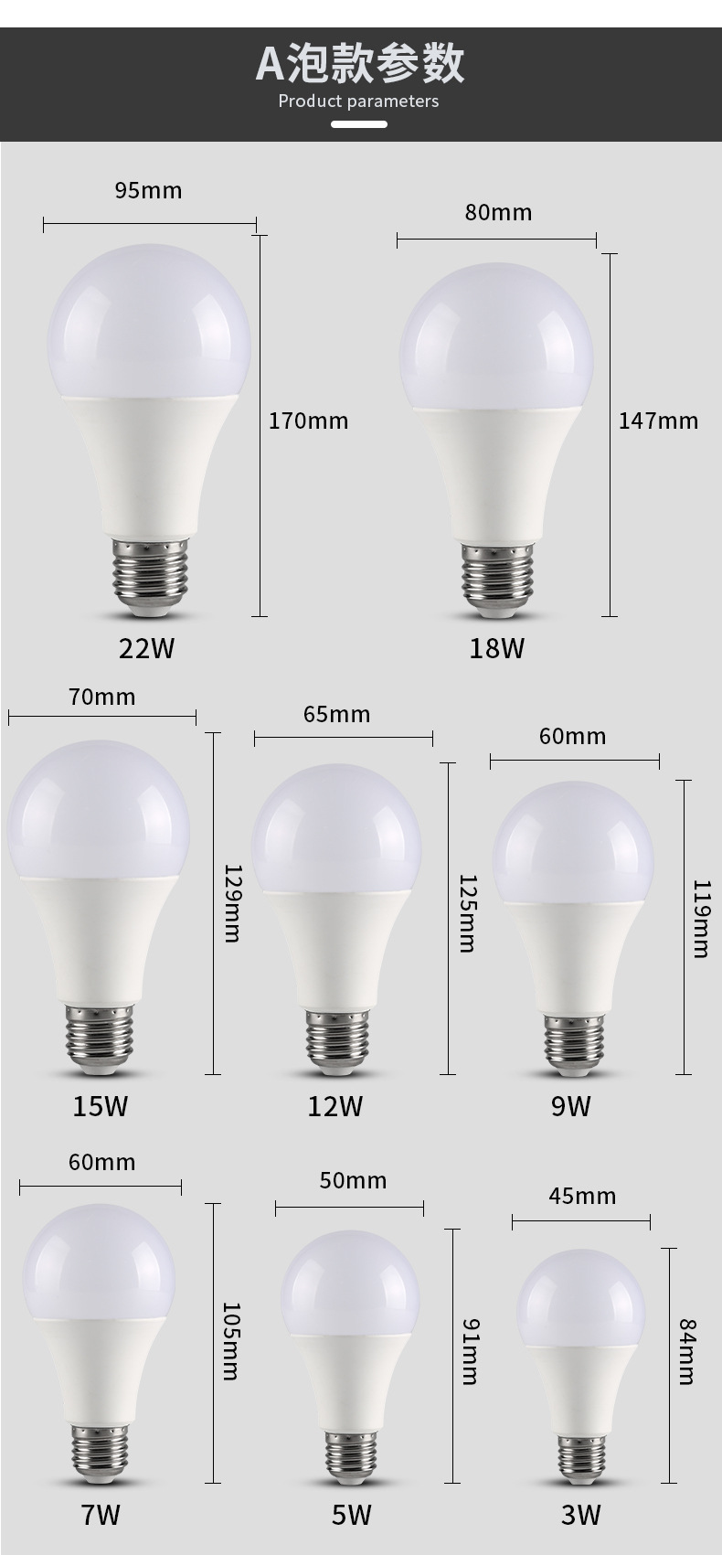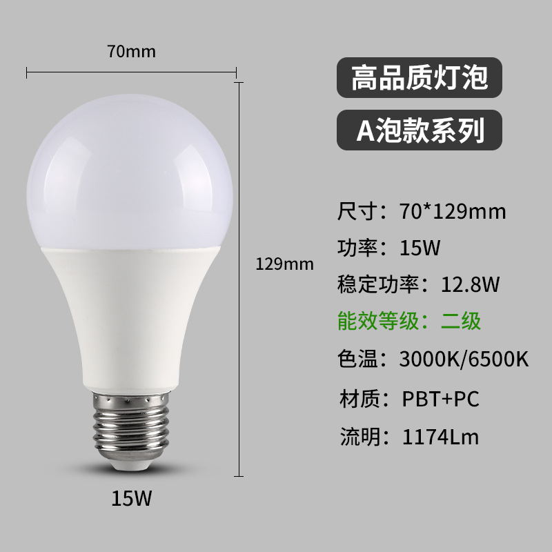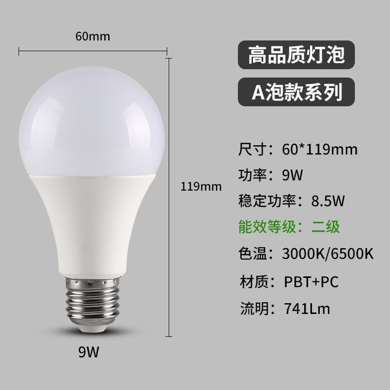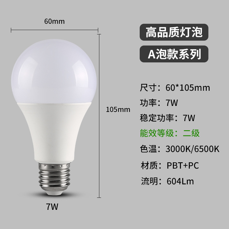led灯泡 白光/暖光家用E27螺旋螺口超亮节能灯泡广东中山球泡灯
