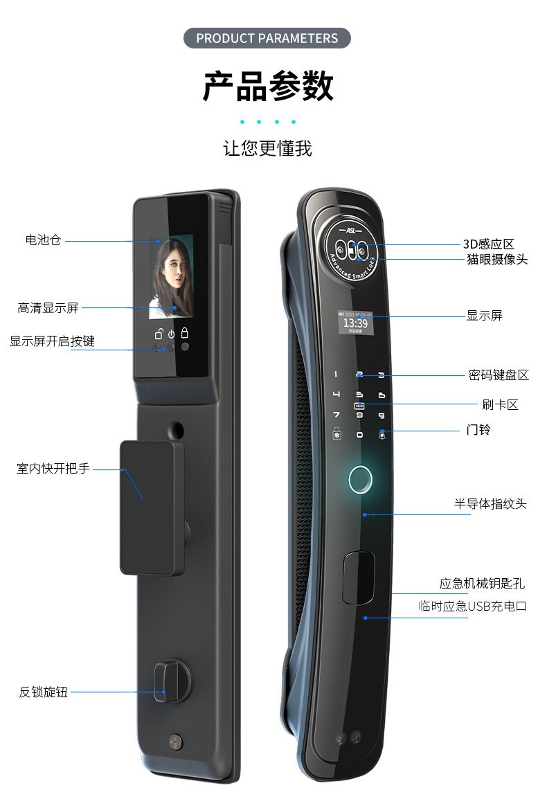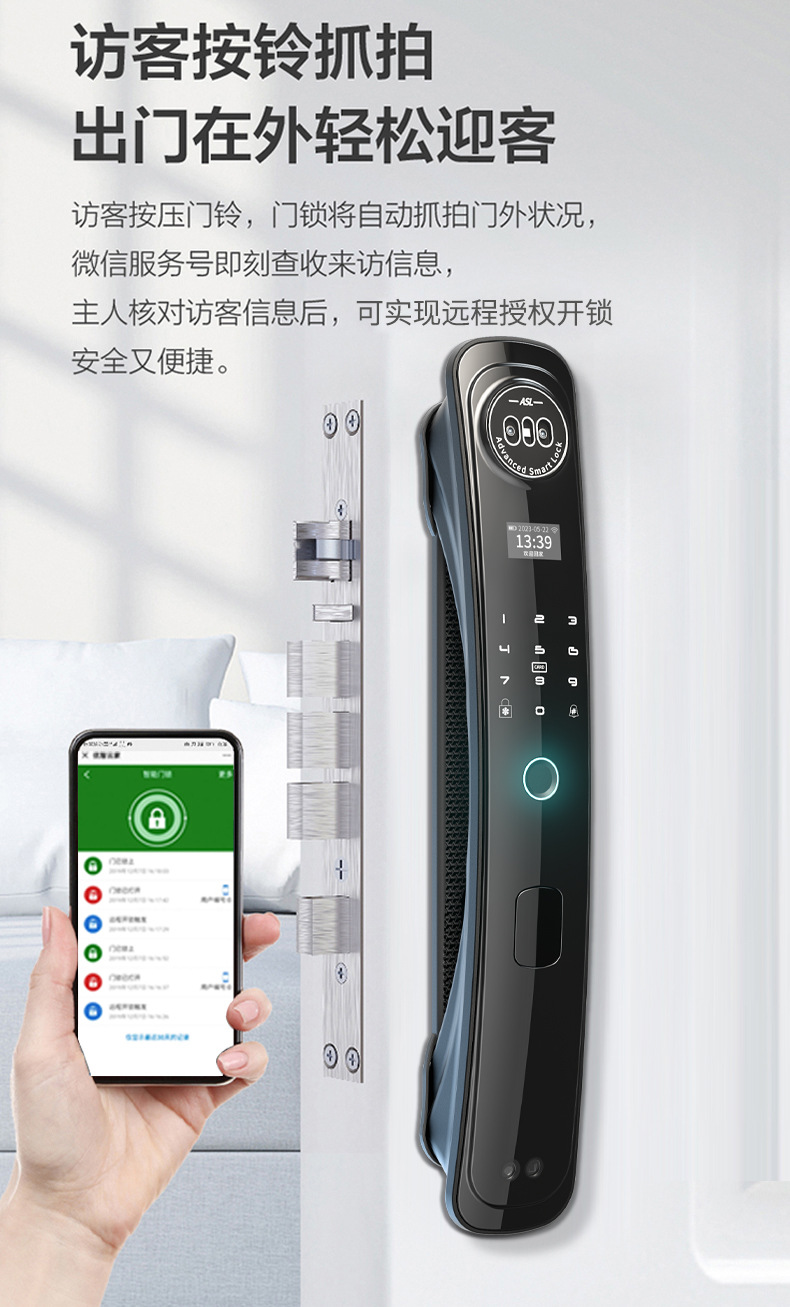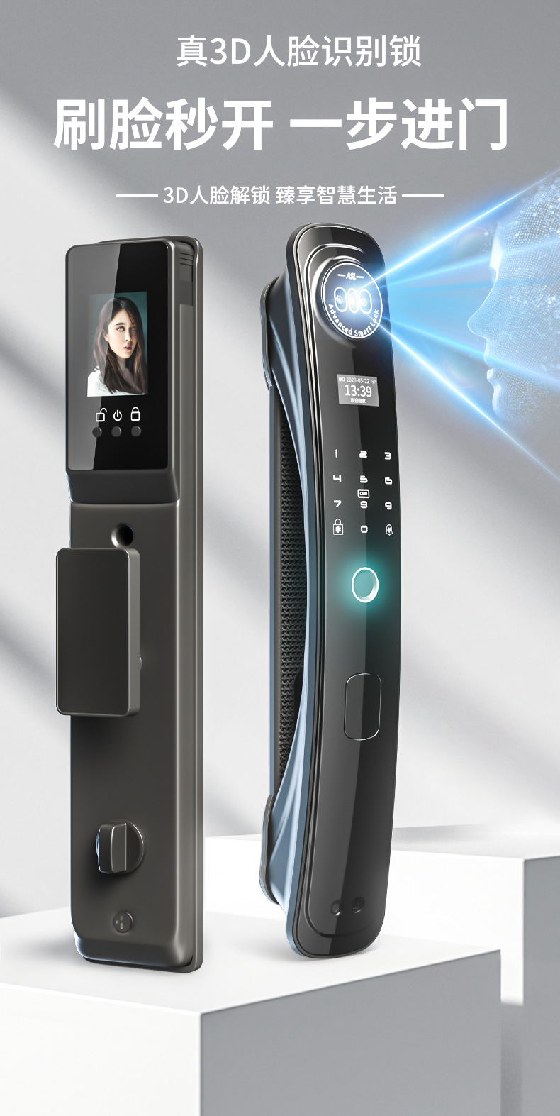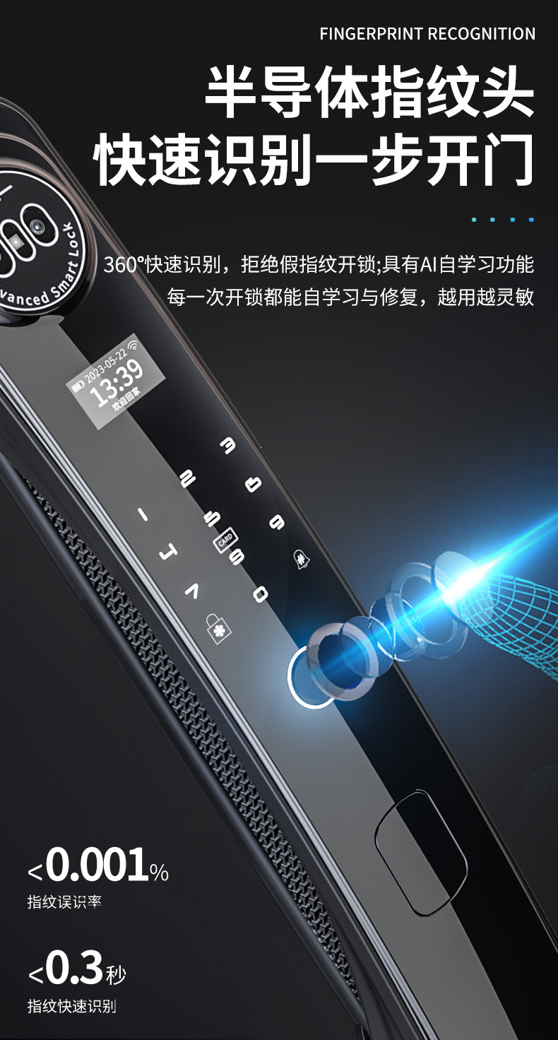 指纹锁智能门锁3D人脸识别全自动猫眼可视大屏工程锁外贸工厂批发