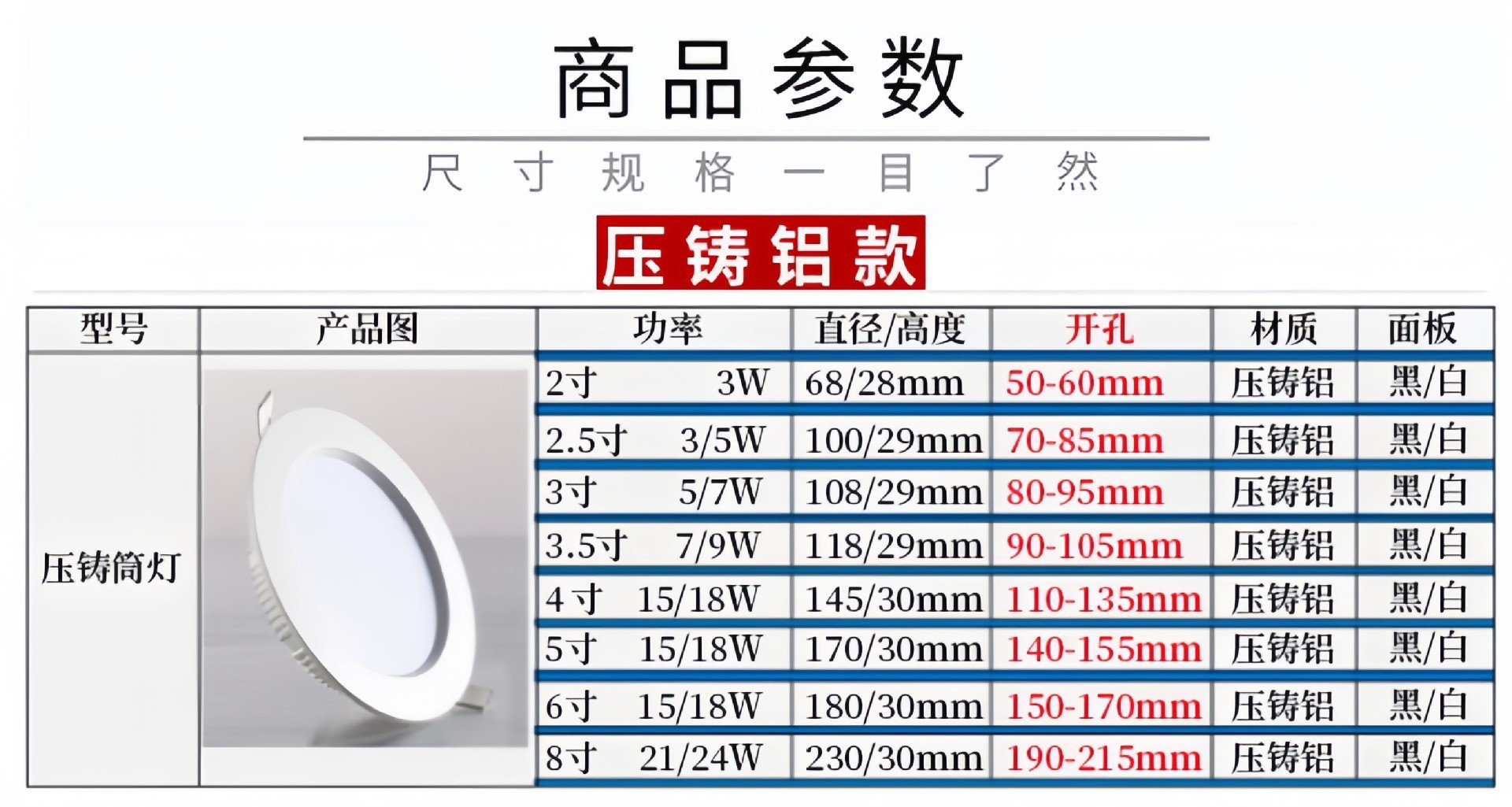 | 2-inch 3w(55-60mm)(2寸 3W(55-60mm)) | USD $1.44 | 19531 piece available |