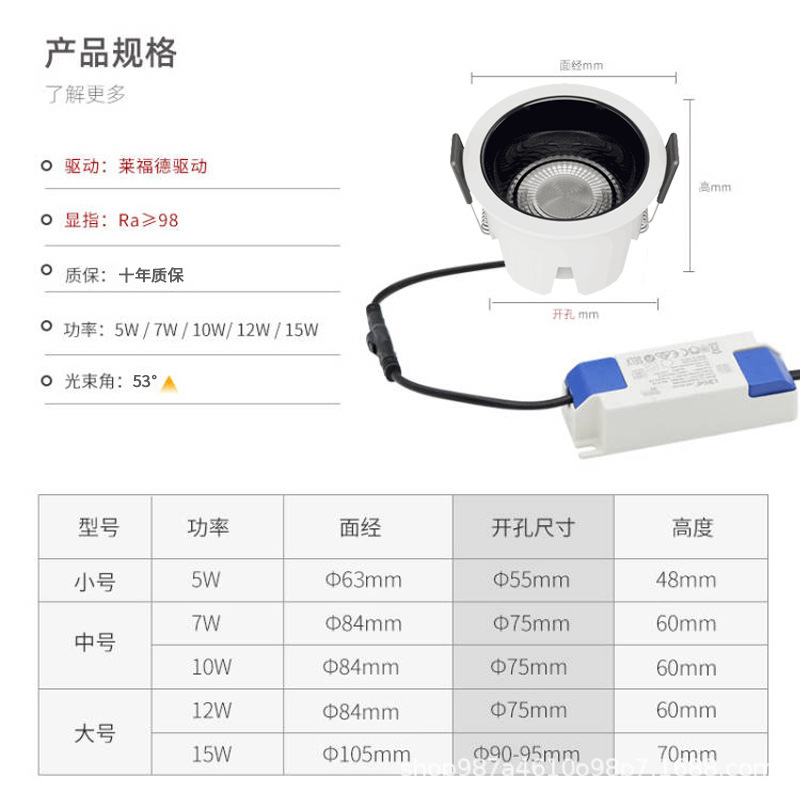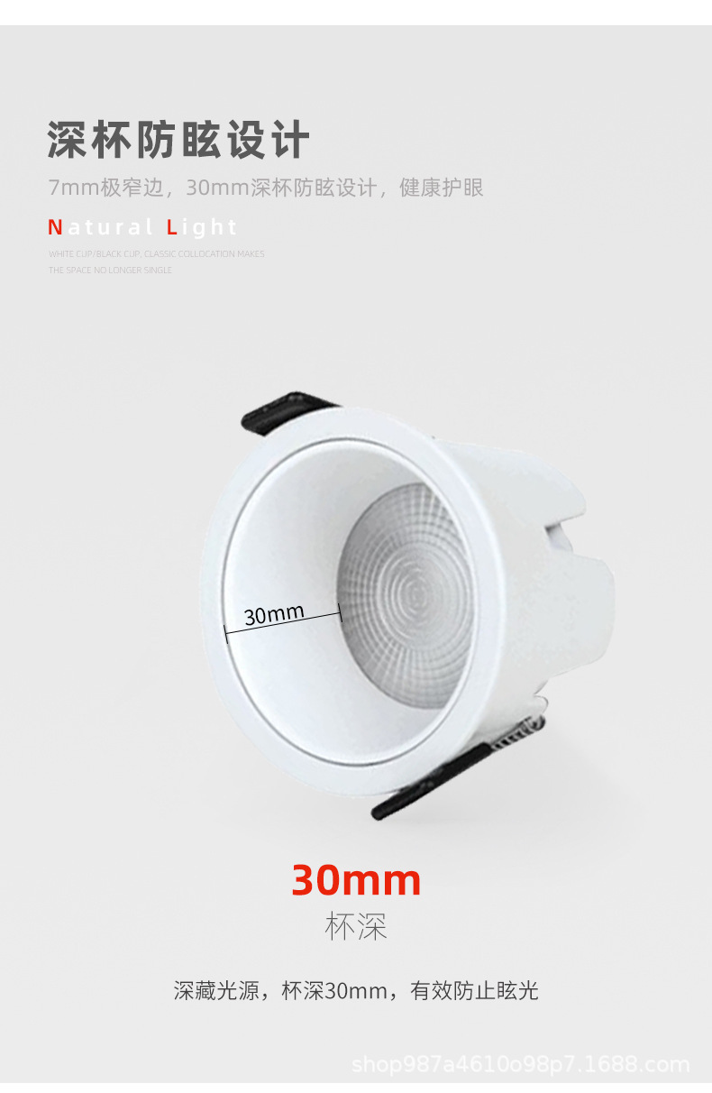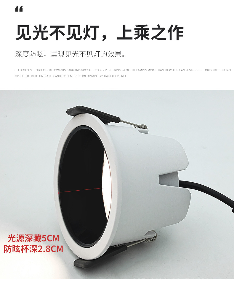 led全光谱98显防眩筒灯窄边框嵌入式过道天花无主灯家用中山灯具