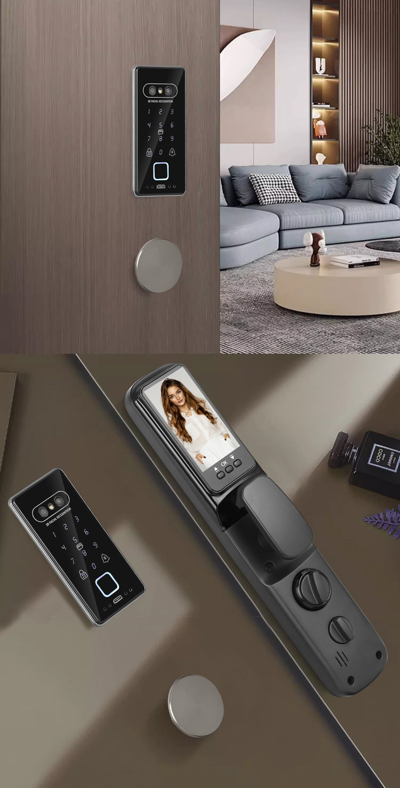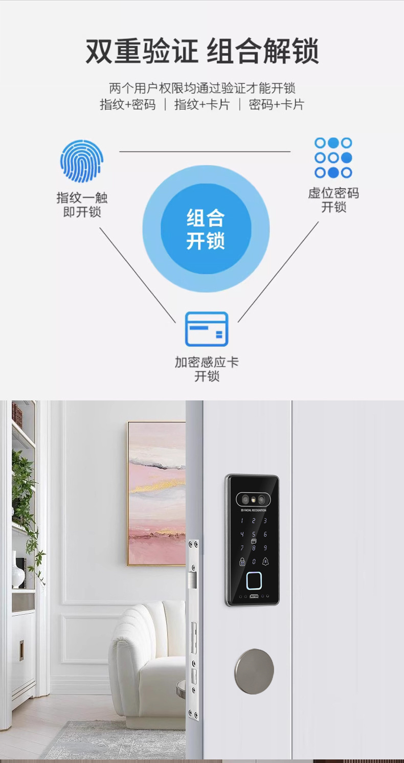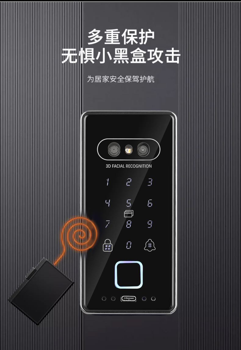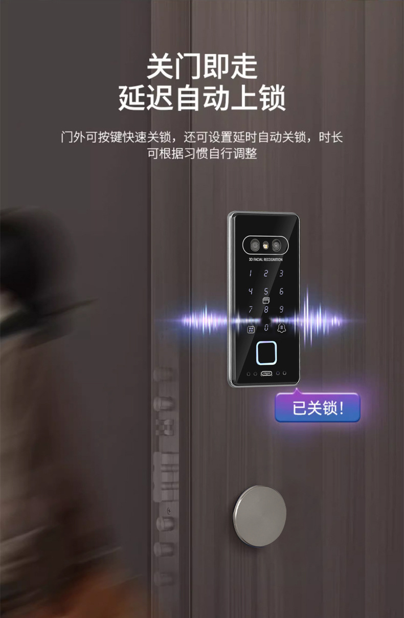 嵌入式指纹锁铜门铸铝门人脸识别智能锁内嵌入式10寸大屏智能锁