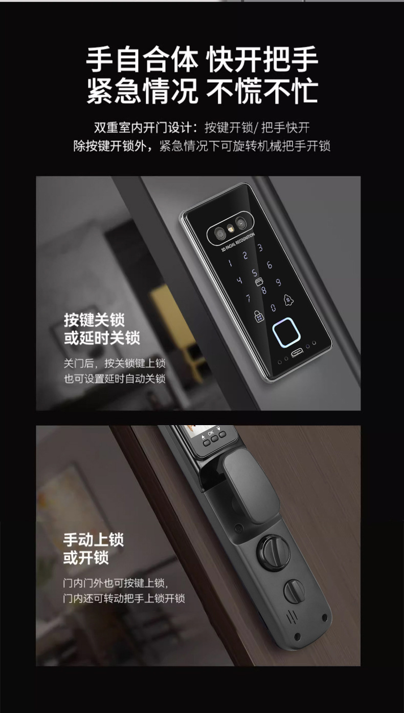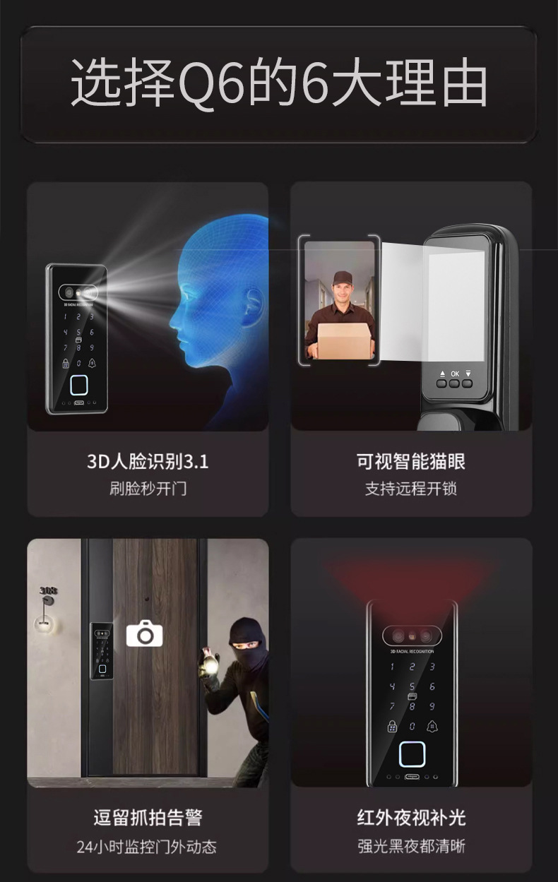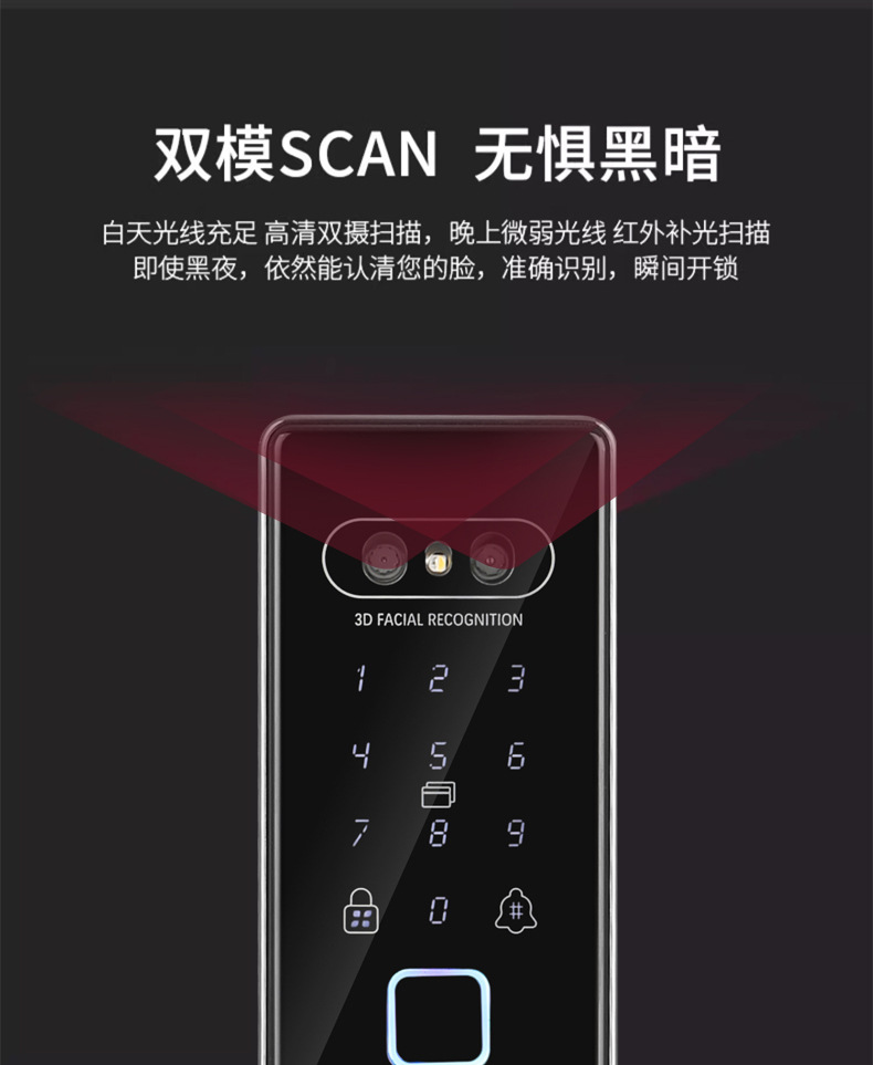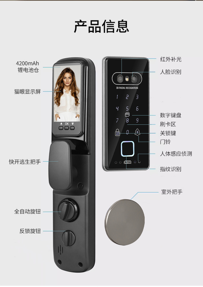 嵌入式指纹锁铜门铸铝门人脸识别智能锁内嵌入式10寸大屏智能锁