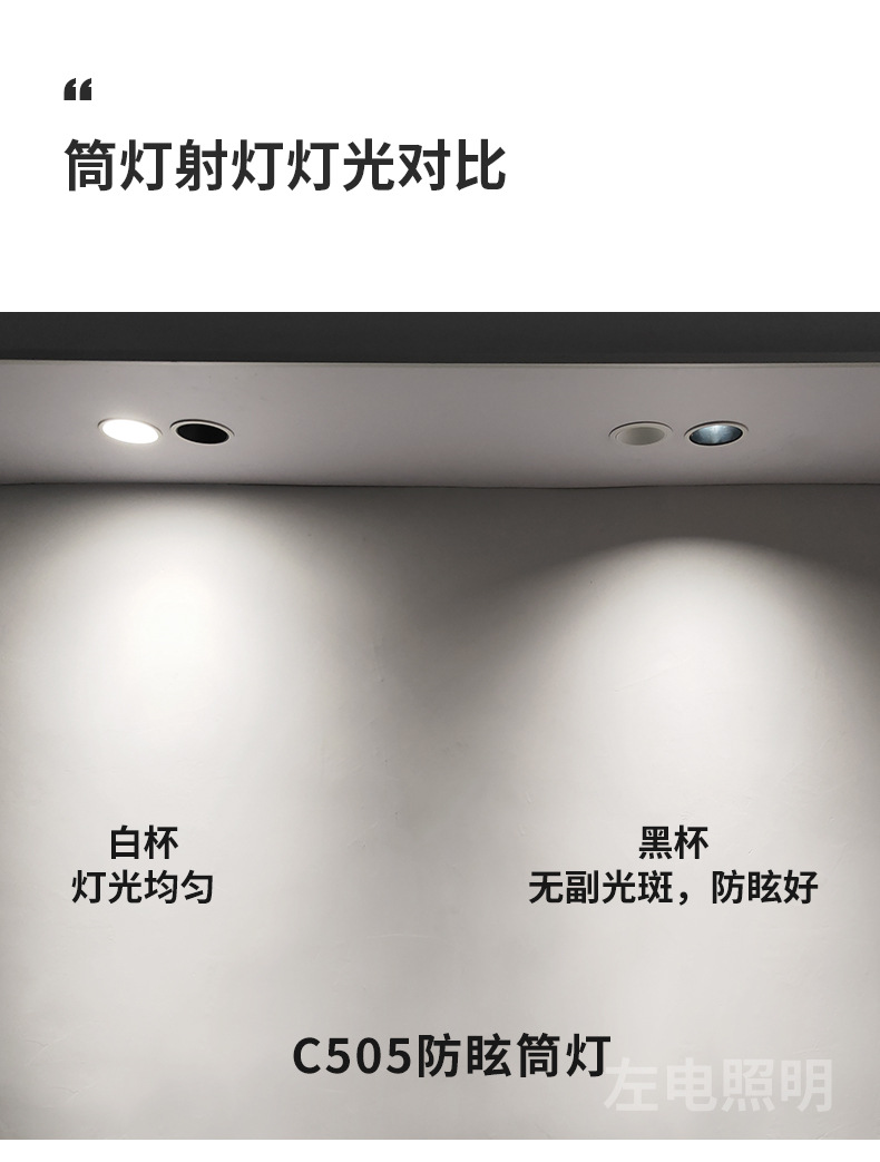 窄边防眩筒灯嵌入式家用客厅无主灯全光谱低蓝光led天花筒灯批发