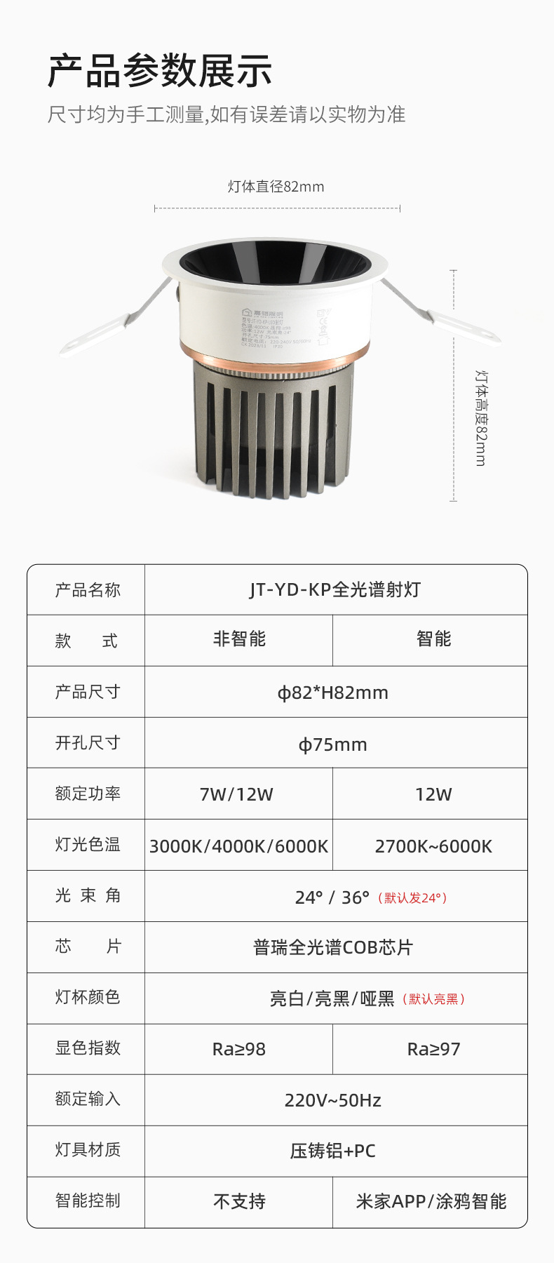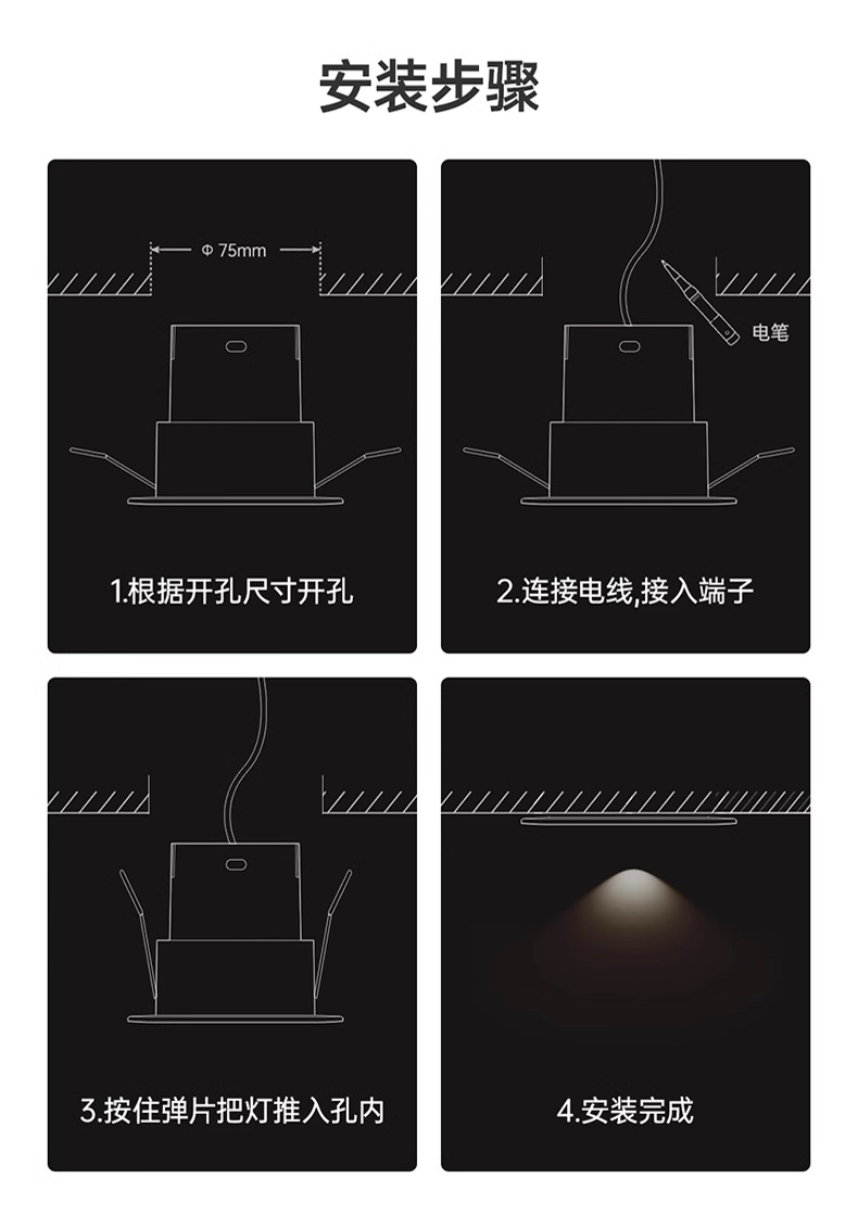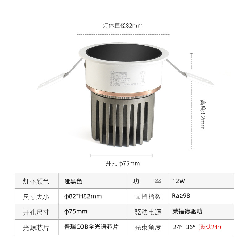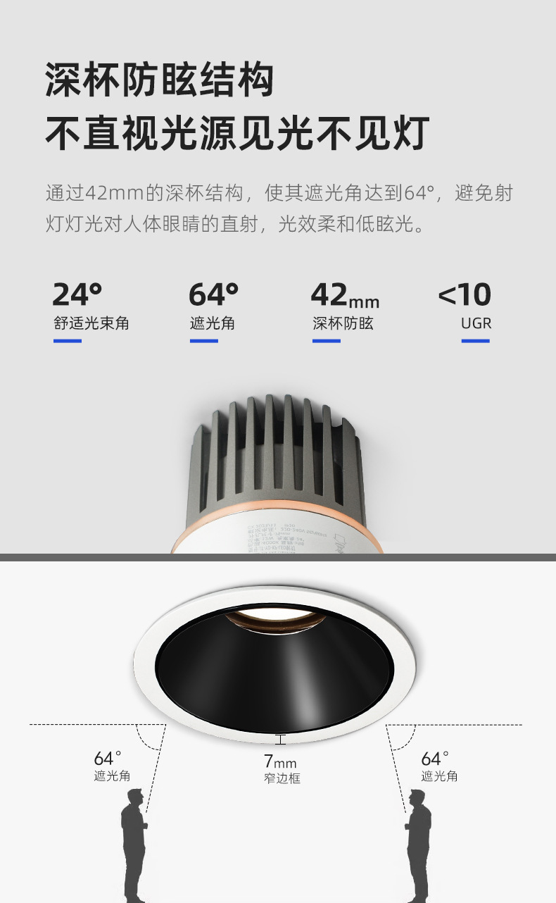 cob小山丘射灯 防眩嵌入式洗墙射灯智能米家无主灯客厅窄边框筒灯