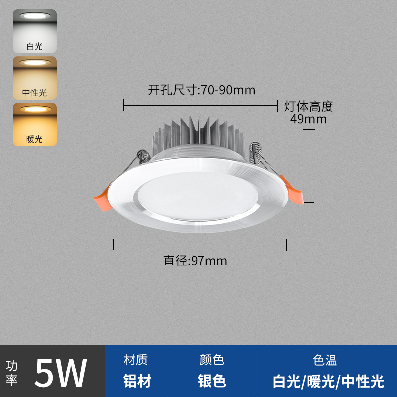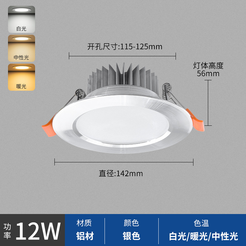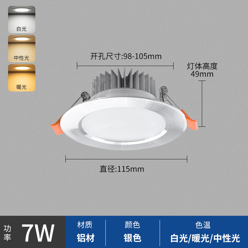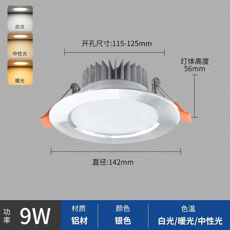 LED全铝嵌入式筒灯天花灯防雾高亮家用客厅孔灯商用顶灯中山批发