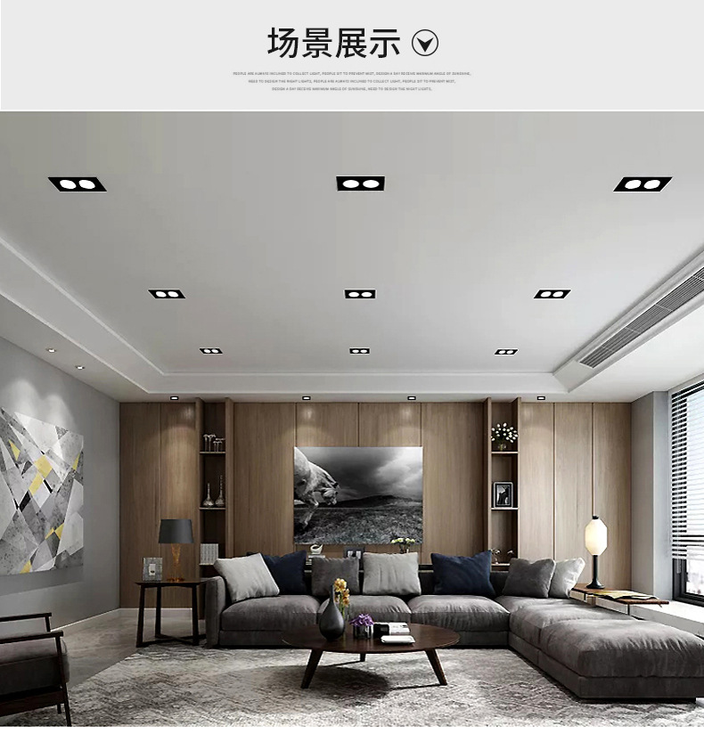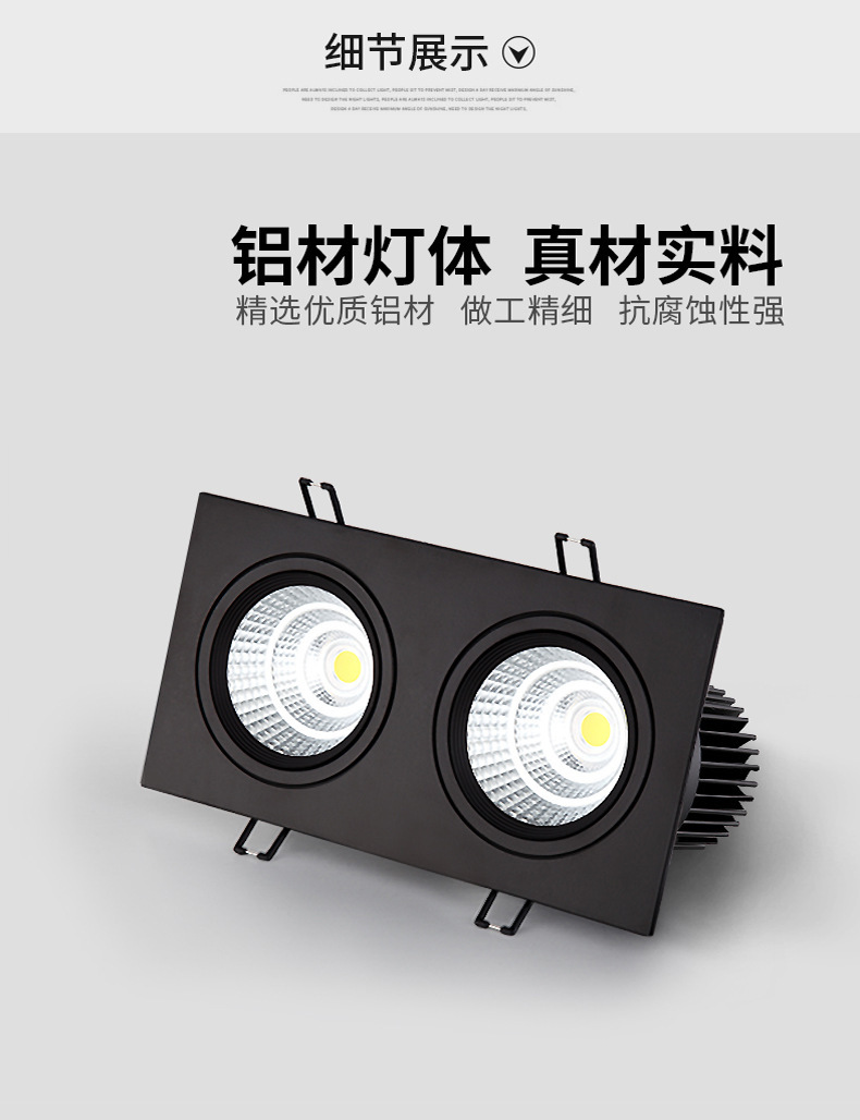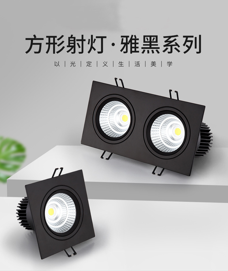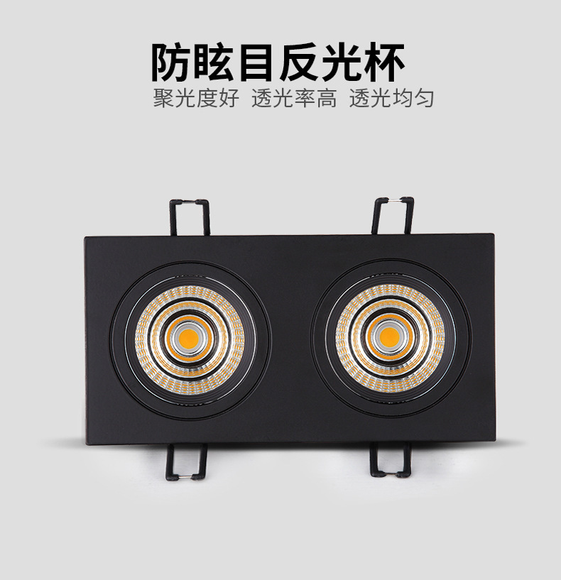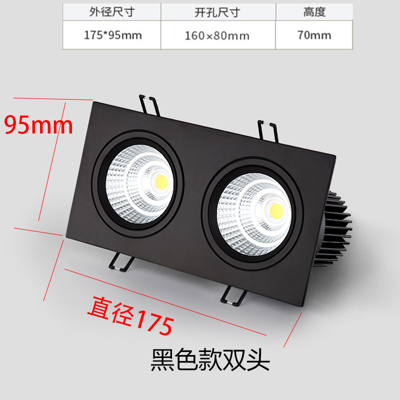 射灯嵌入式led洗墙灯天花灯筒灯双头长方形照明灯酒店格栅灯超市