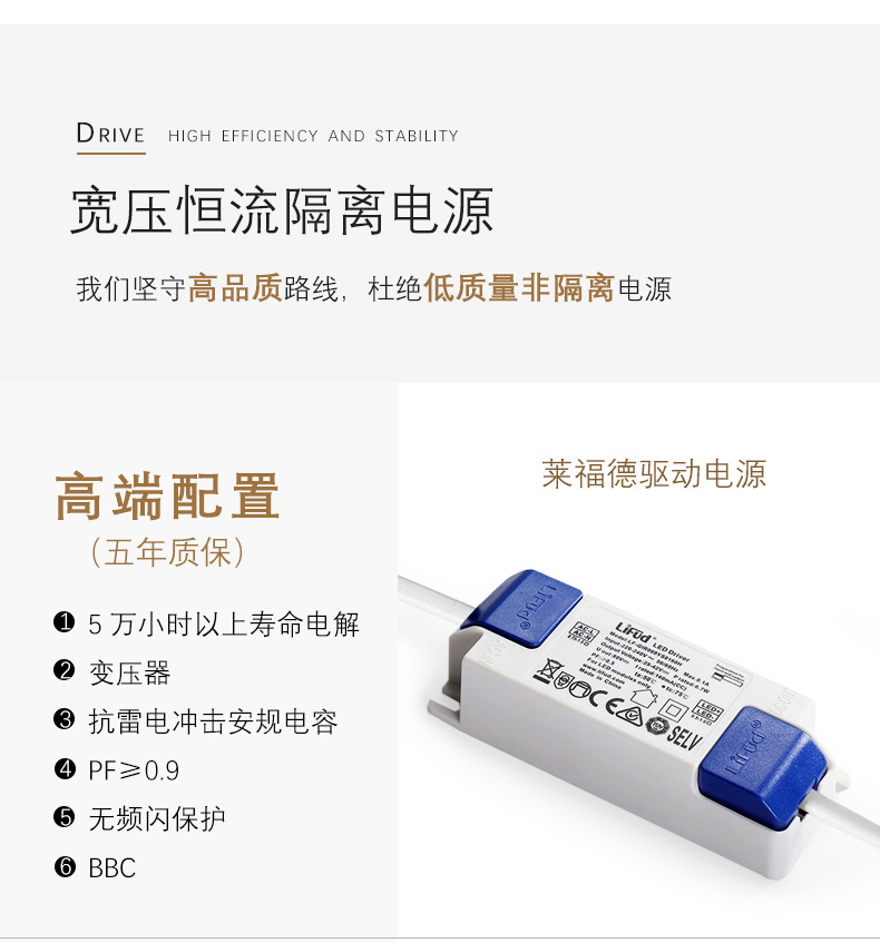 | variable light with three colors mid-end configuration prui lamp beads + isolation driver warranty for 2 years(三色变光 中端配置 普瑞灯珠+隔离驱动 质保2年) | USD $7.49 | 100000 piece available |