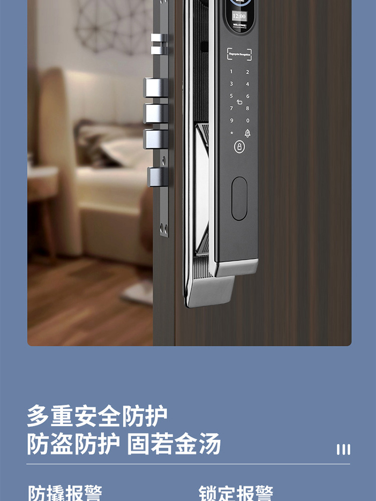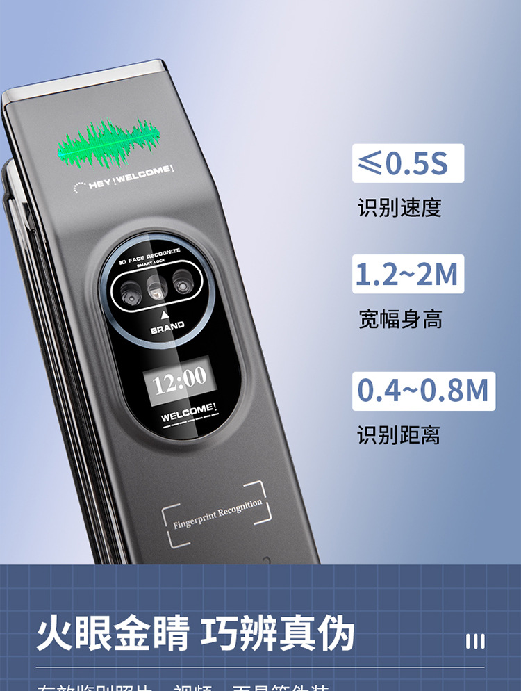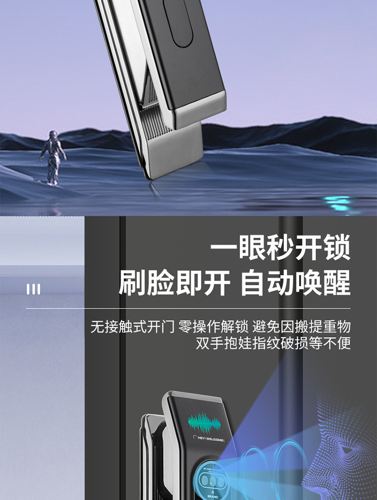 新款人脸识别指纹锁远程可视对讲家用大门防盗门全自动智能锁厂家