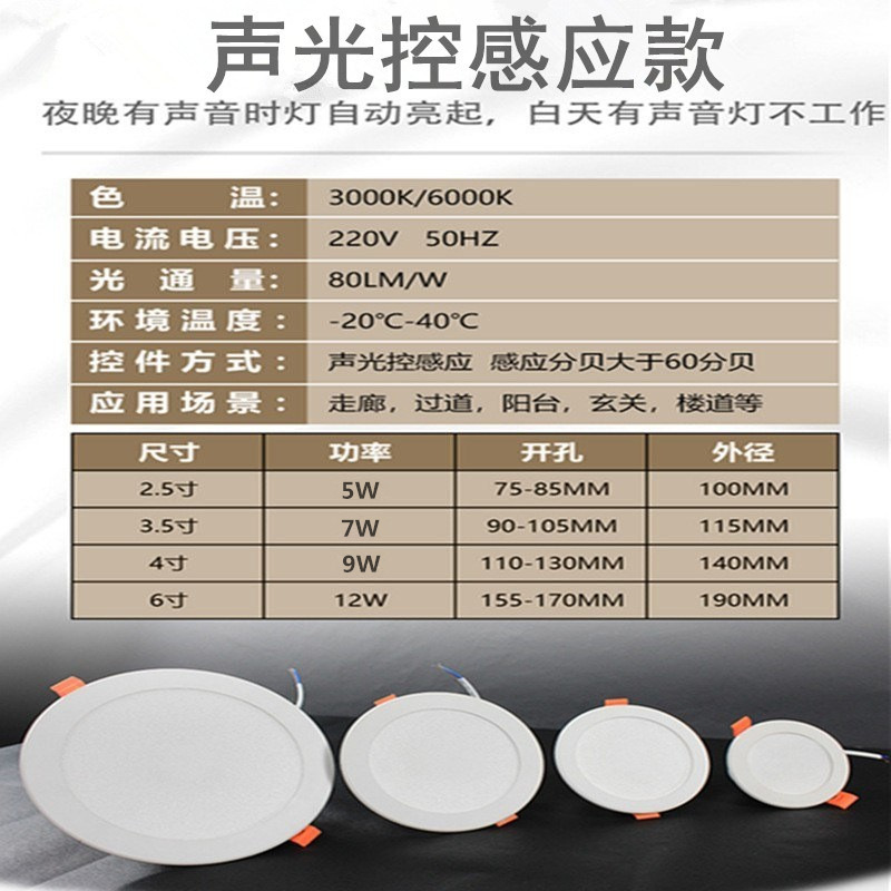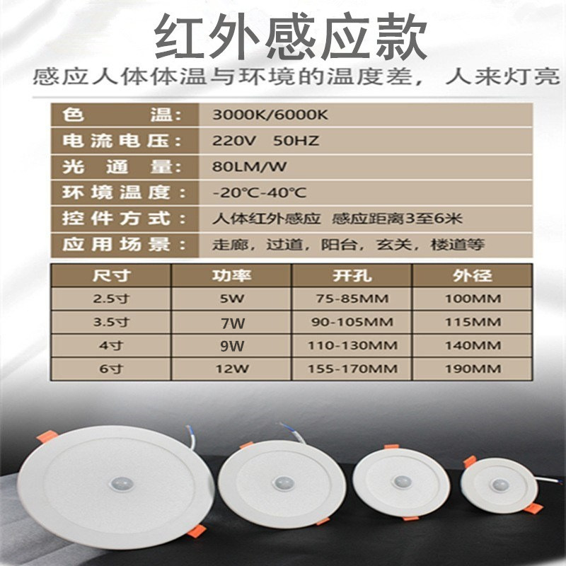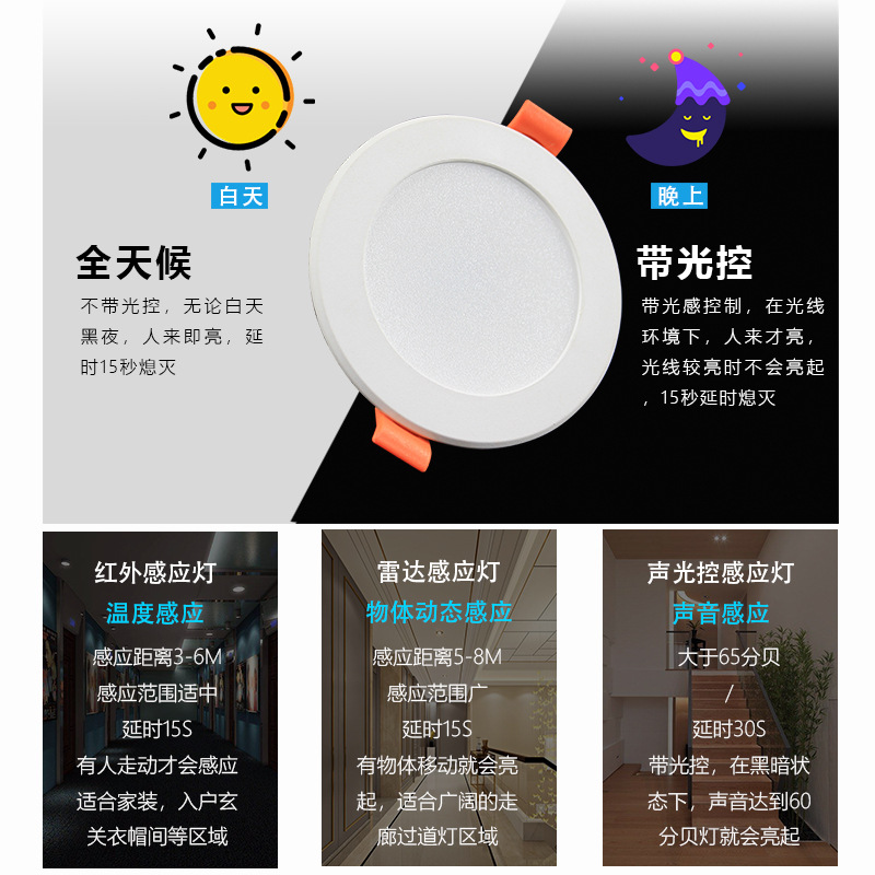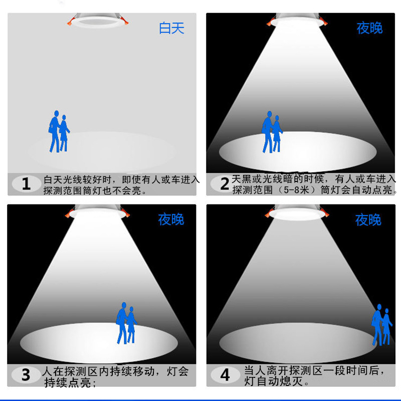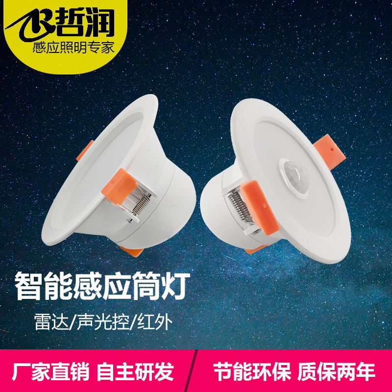 led人体感应筒灯声光控嵌入式孔灯红外感应天花洞灯雷达感应筒灯