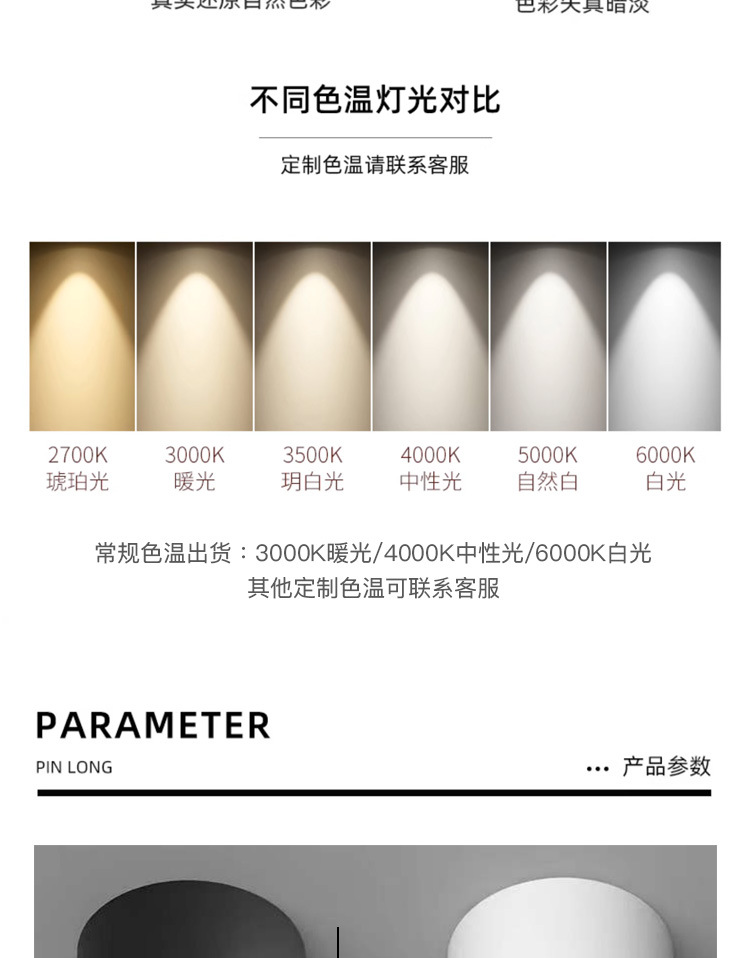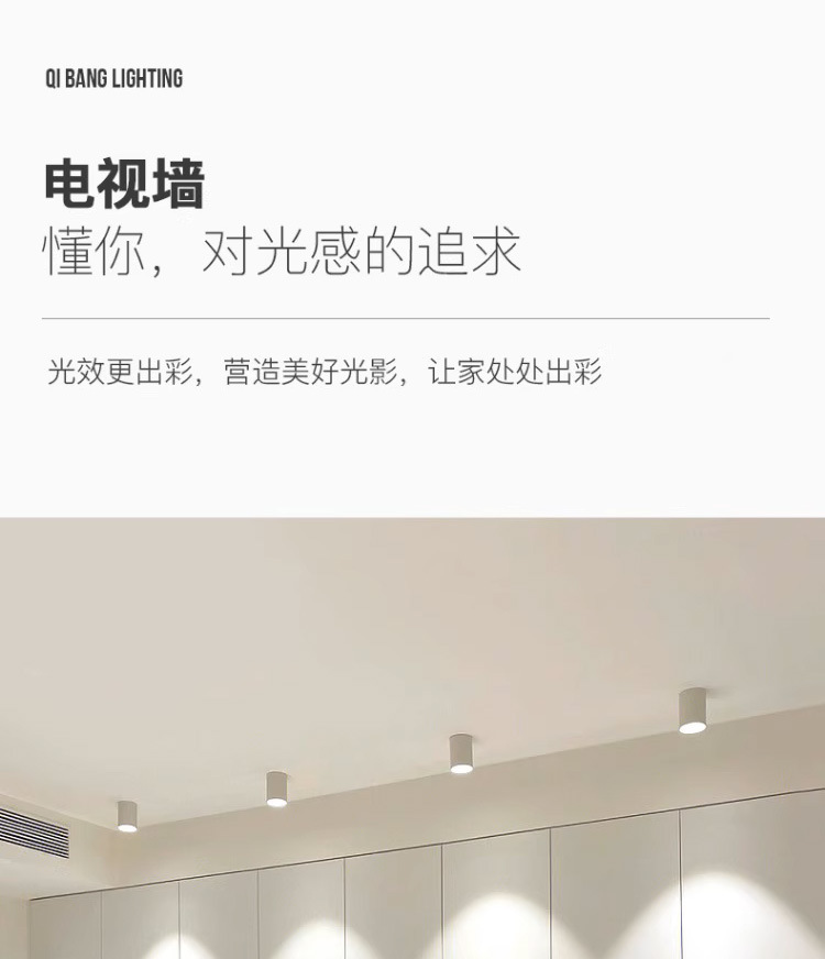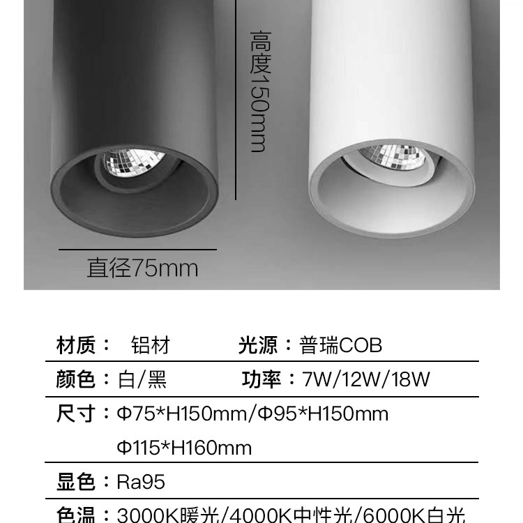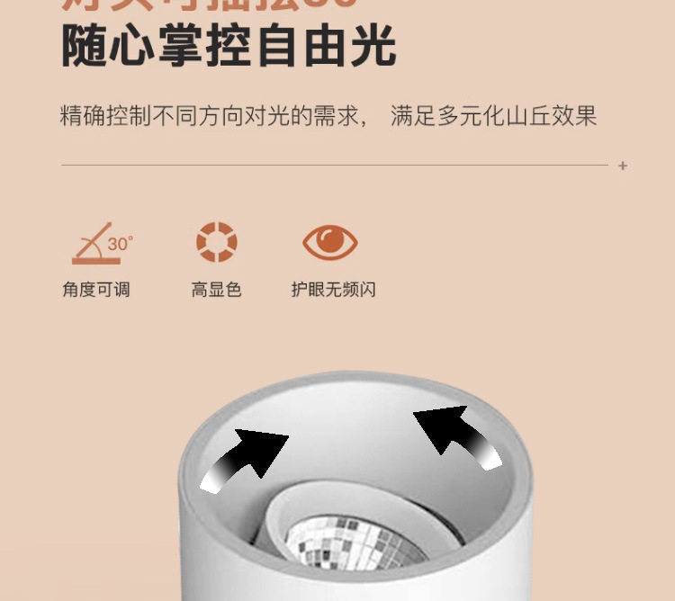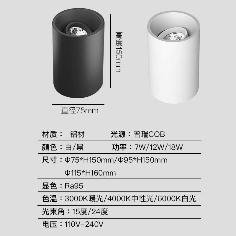 明装cob射灯可调角度深防眩led筒灯家用客厅背景墙吸顶圆形天花灯