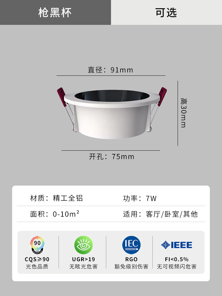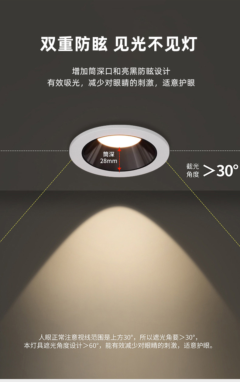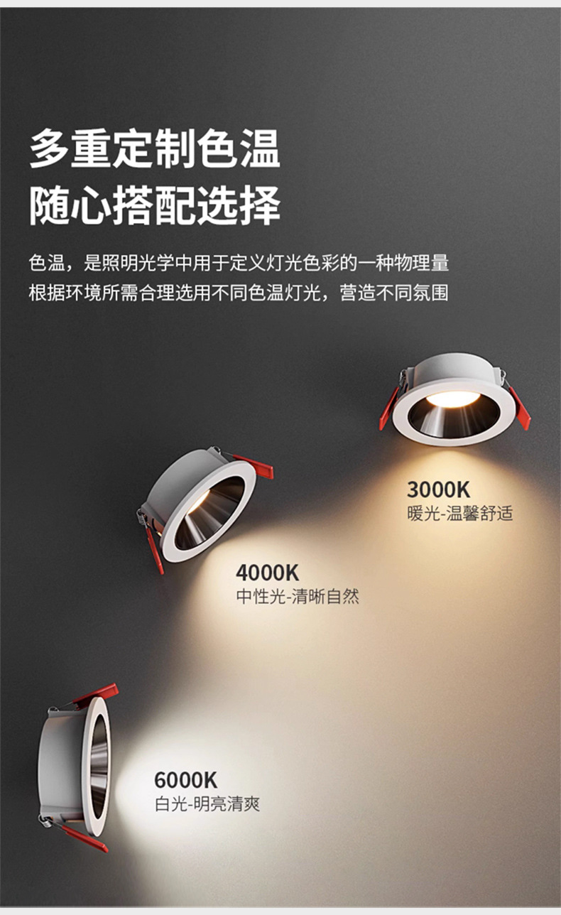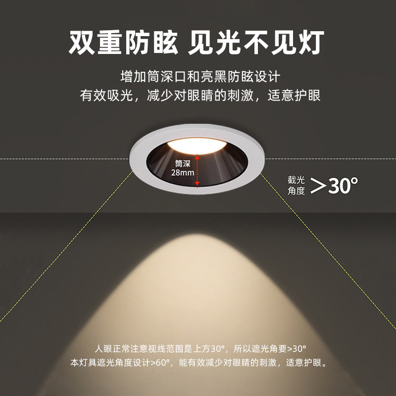 三棵松防眩射灯嵌入式天花灯客厅无主灯吊顶孔灯矮吊顶筒灯