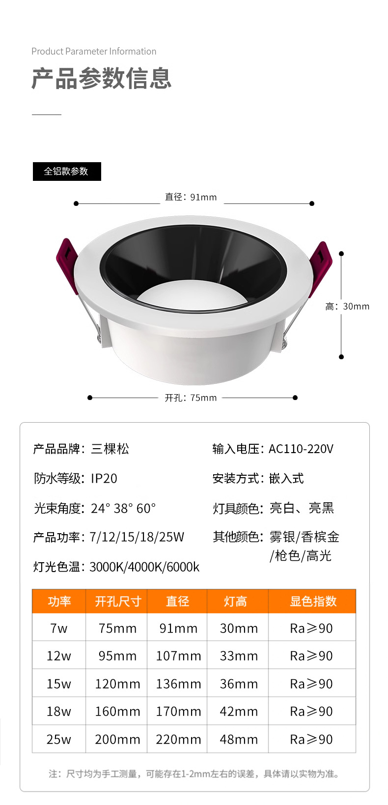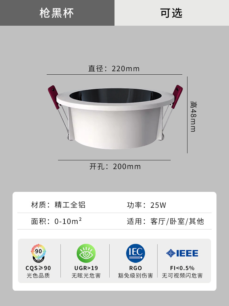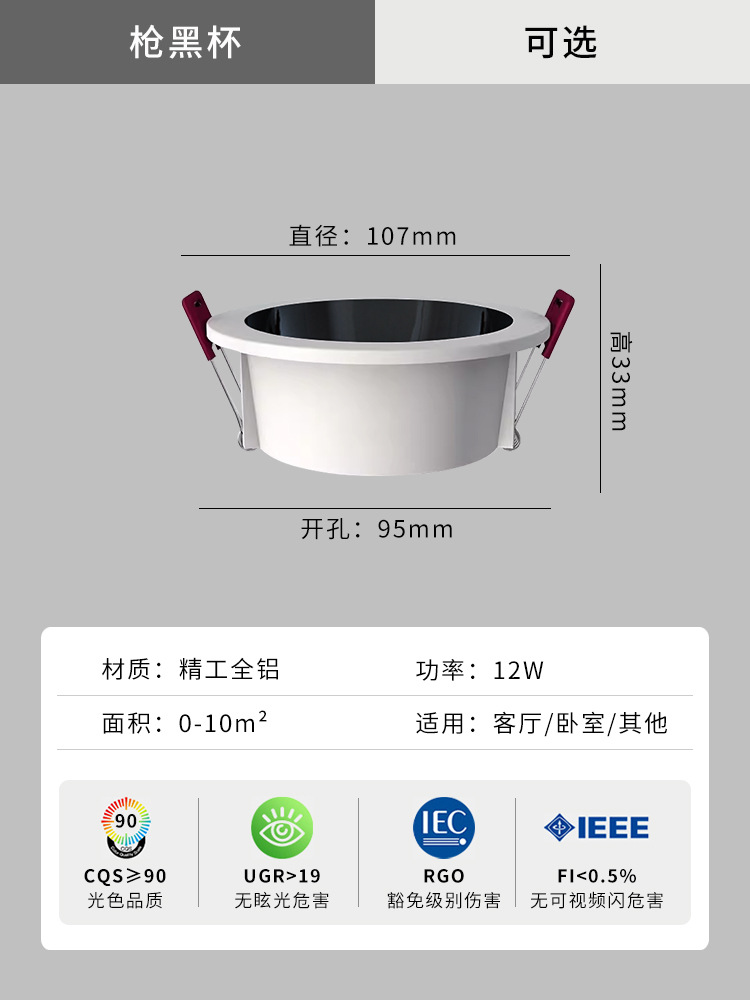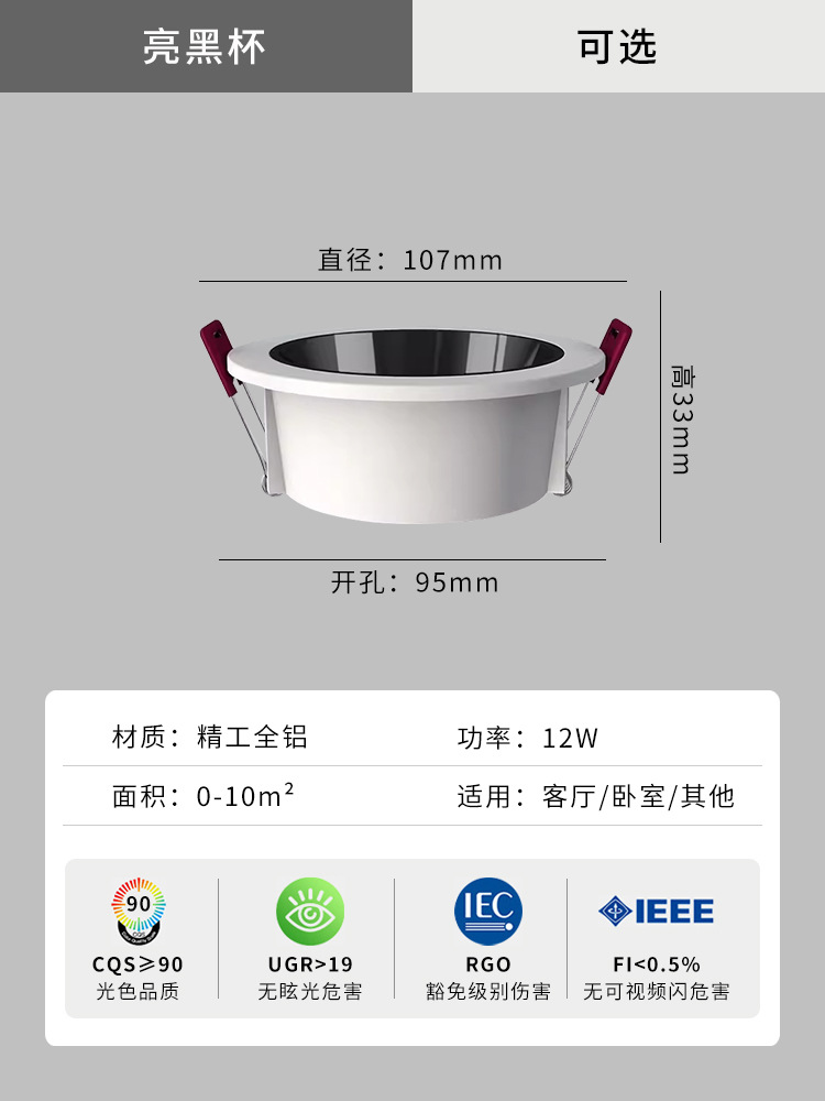 三棵松防眩射灯嵌入式天花灯客厅无主灯吊顶孔灯矮吊顶筒灯