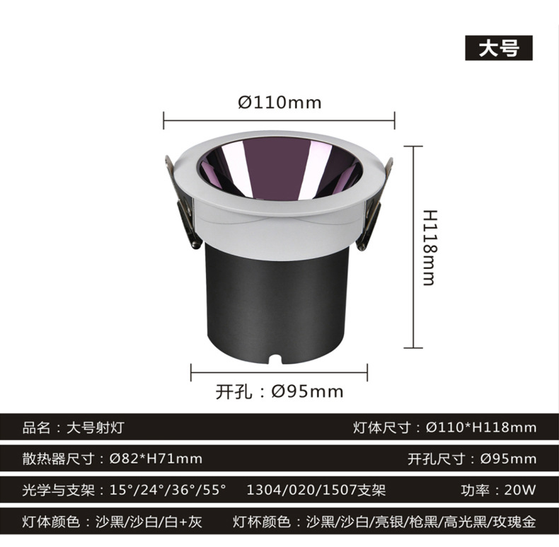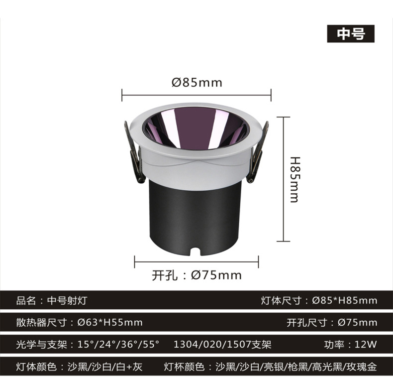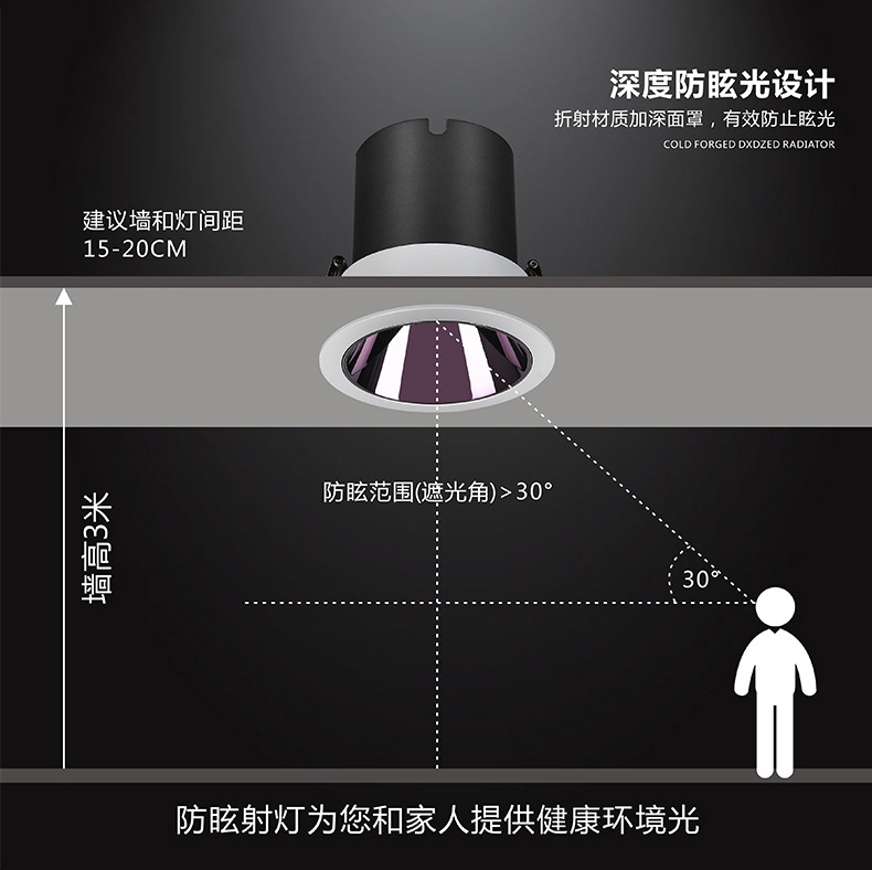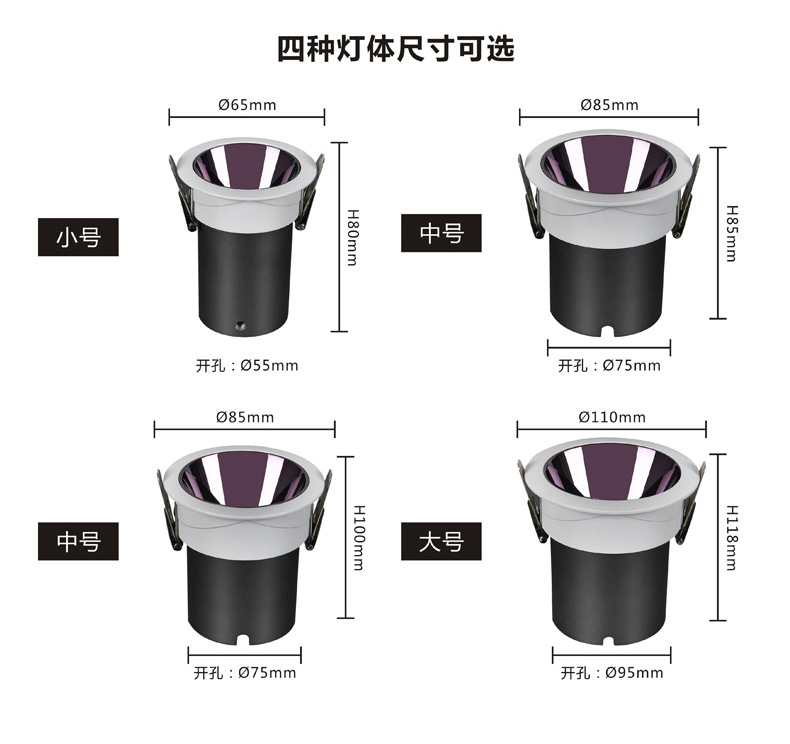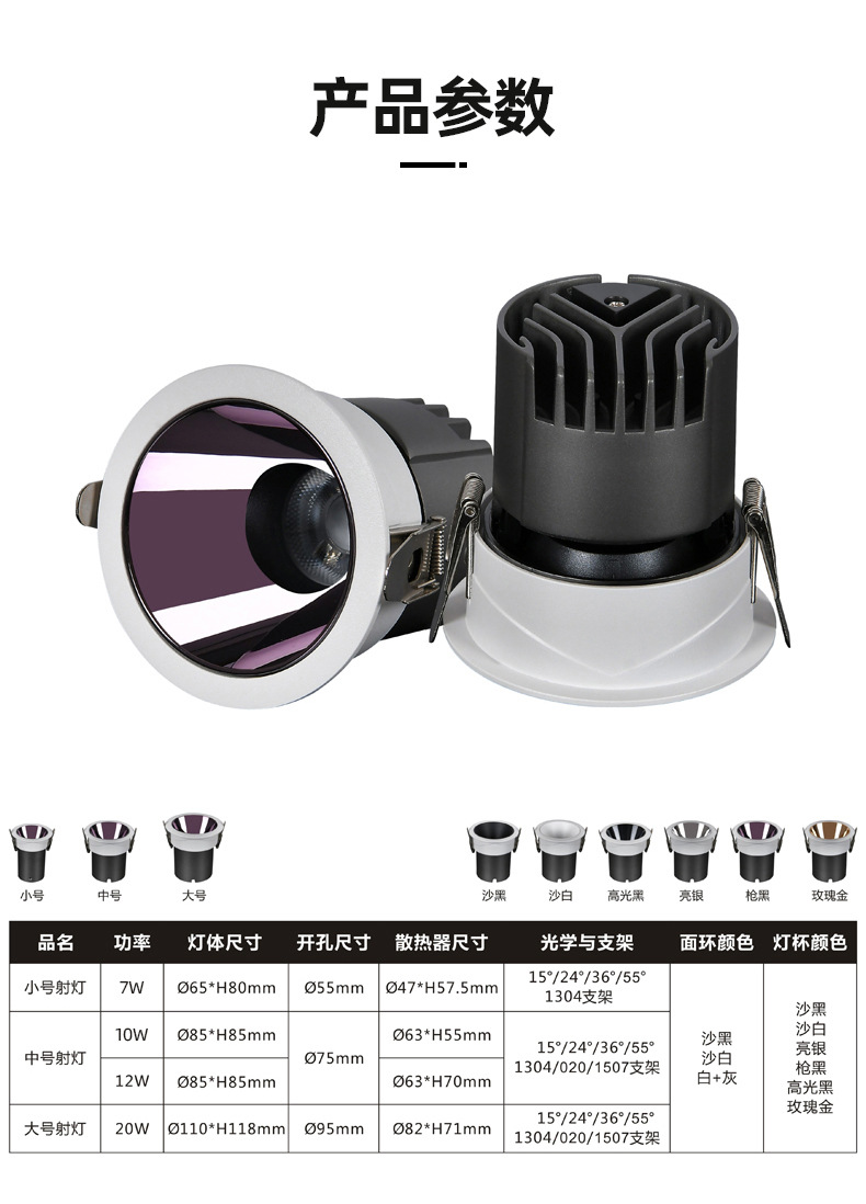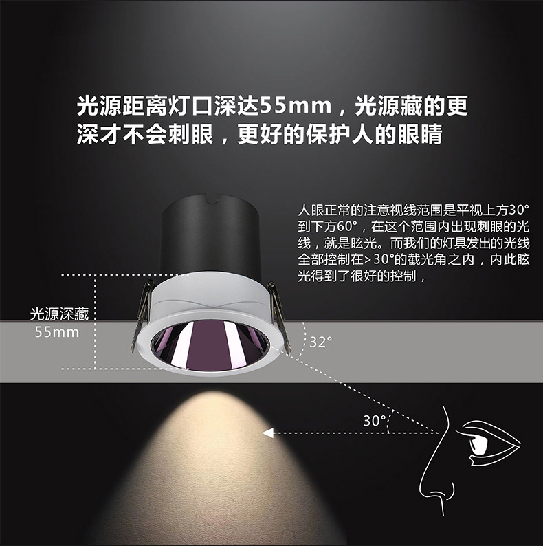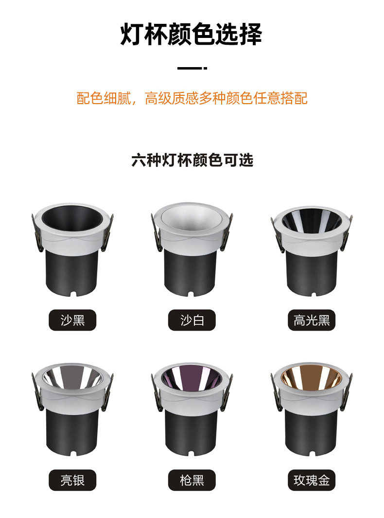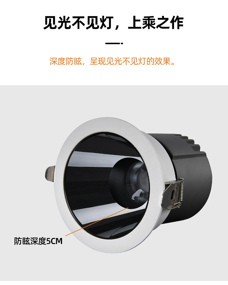 深防眩光射灯筒灯全光谱清晰小山丘cob嵌入式射灯无主灯家用射灯