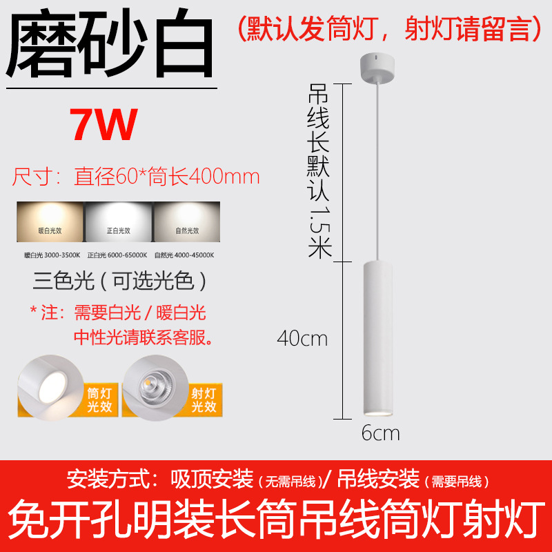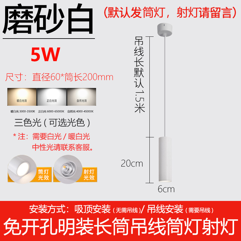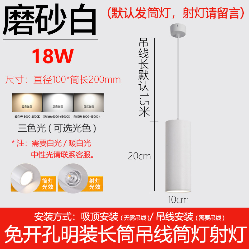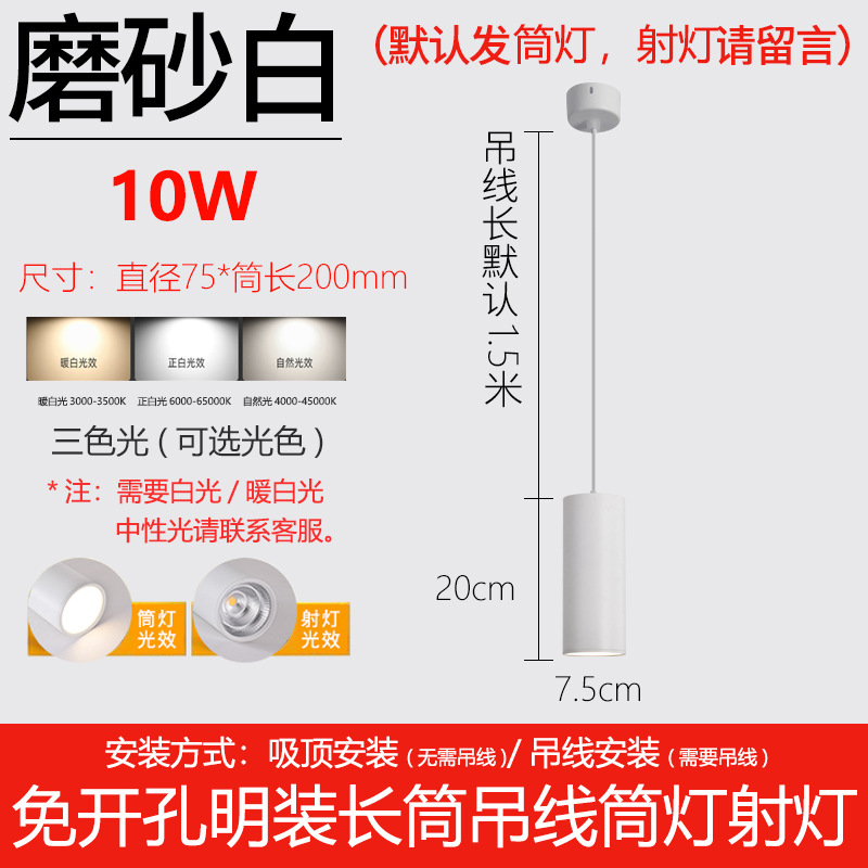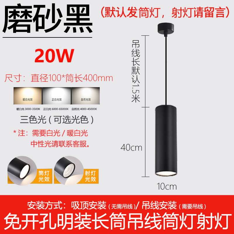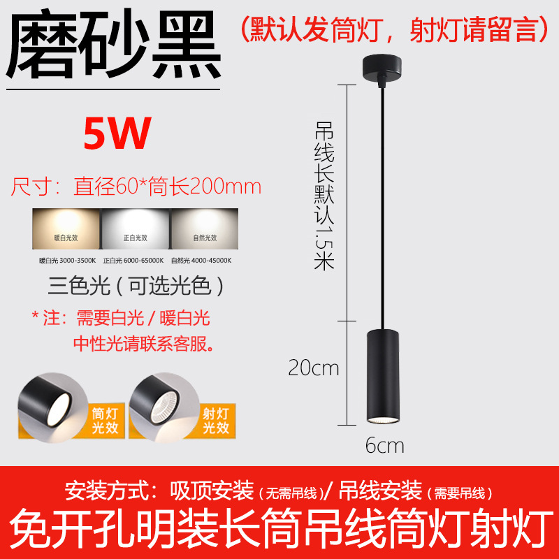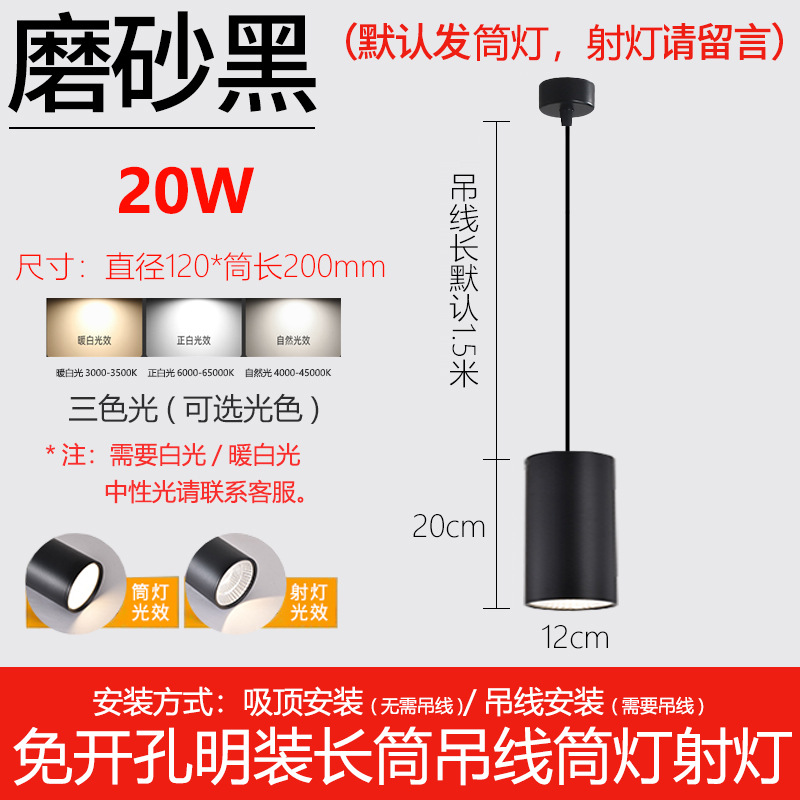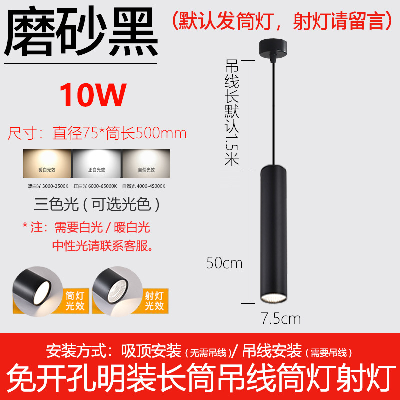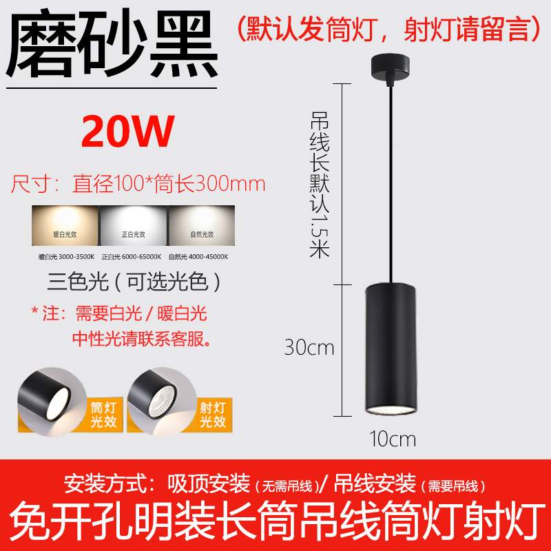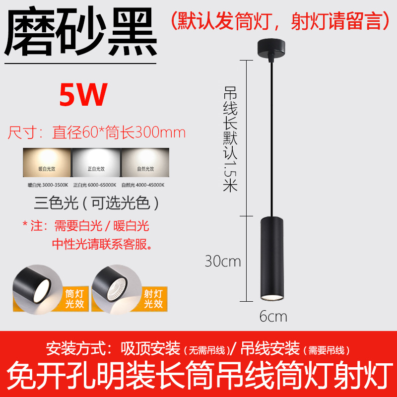 明装led筒灯吊线射灯圆柱形吸顶式长筒吊灯餐厅办公室商场射灯COB