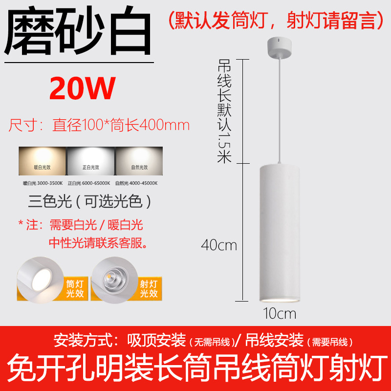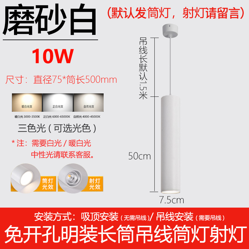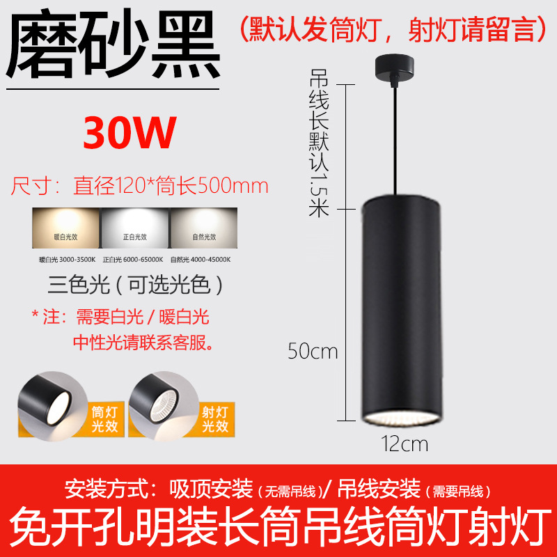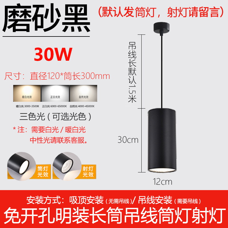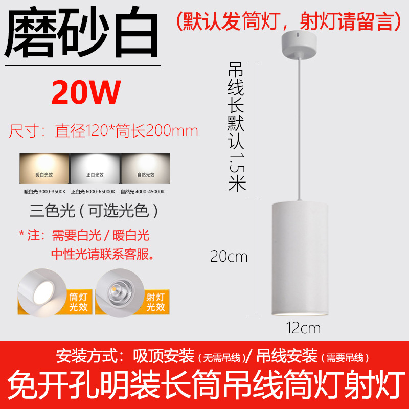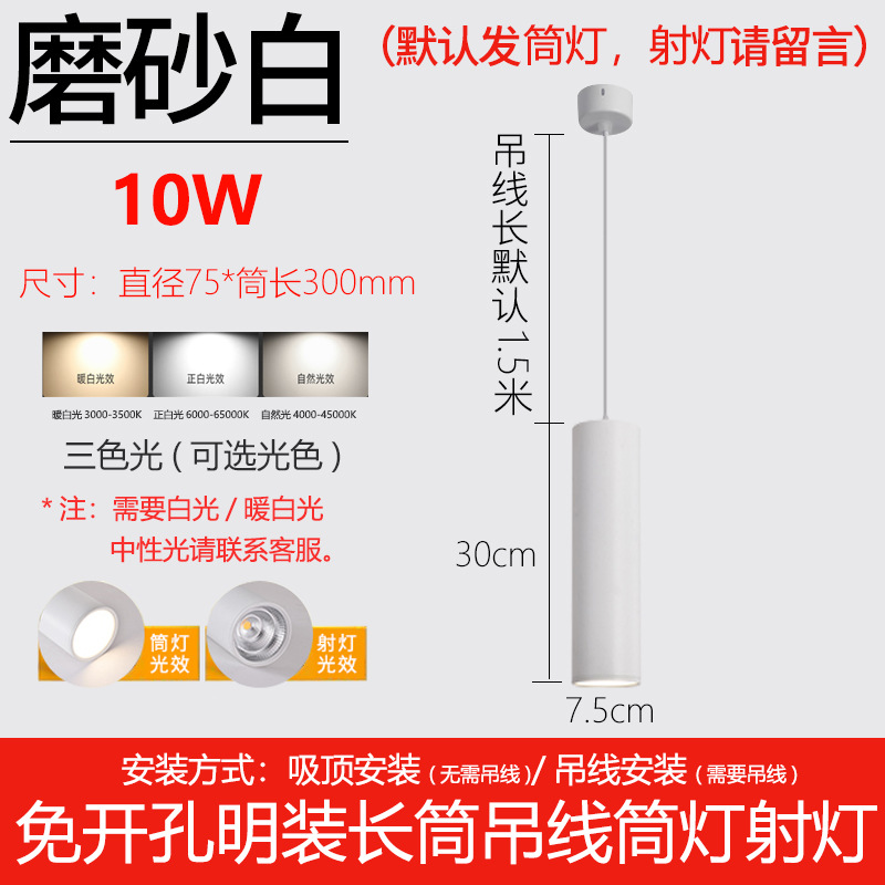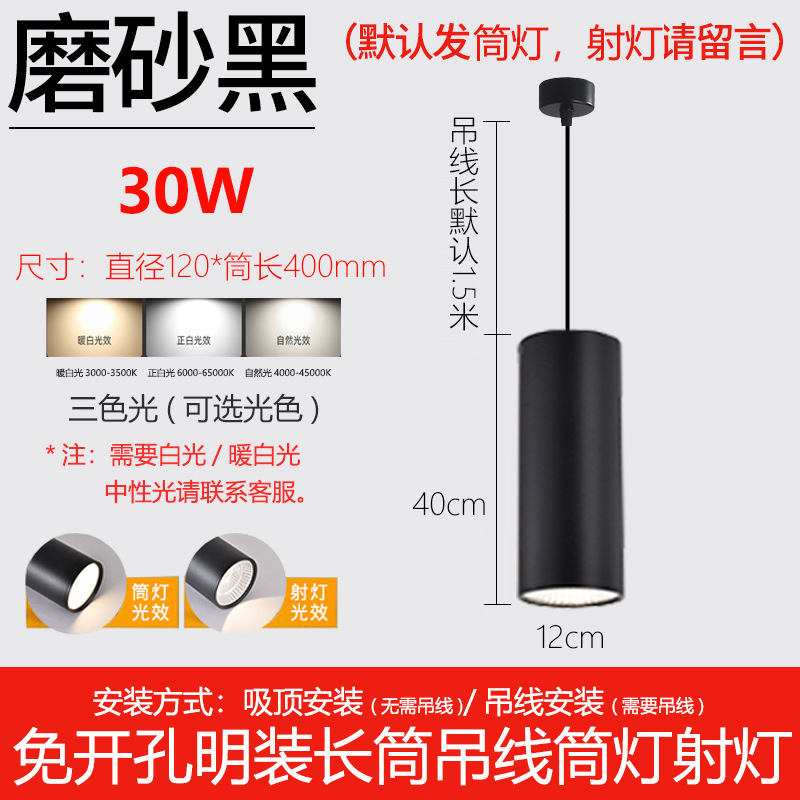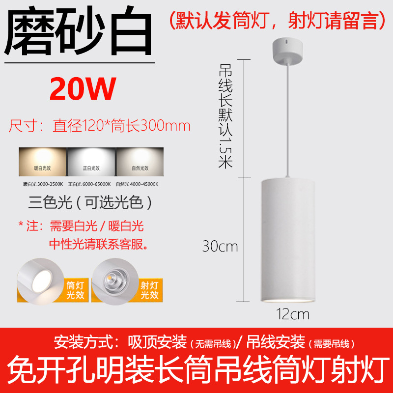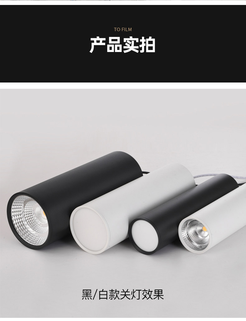 明装led筒灯吊线射灯圆柱形吸顶式长筒吊灯餐厅办公室商场射灯COB