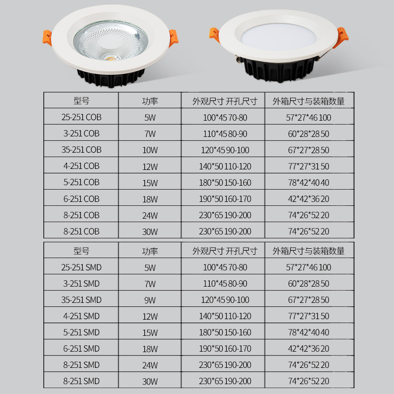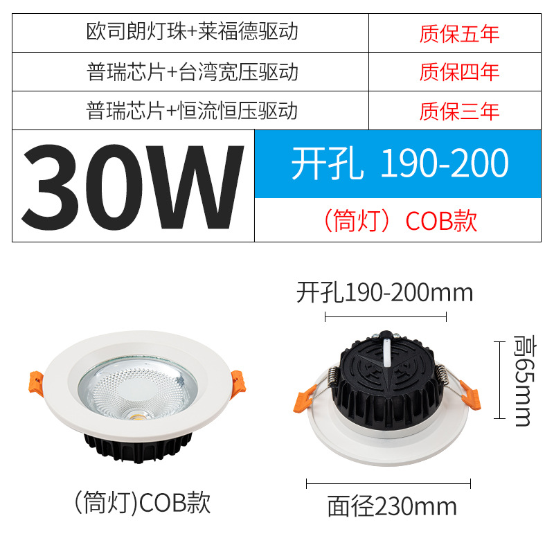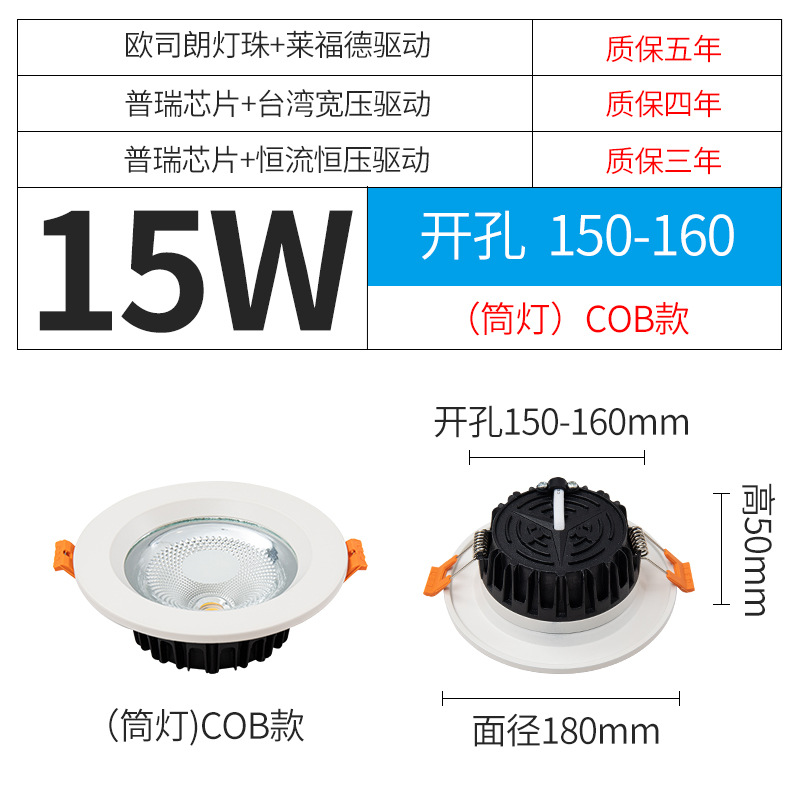 LED压铸COB筒灯 2.5寸3寸4寸6寸8寸5W15W18W24W30W嵌入式天花孔灯
