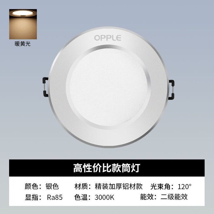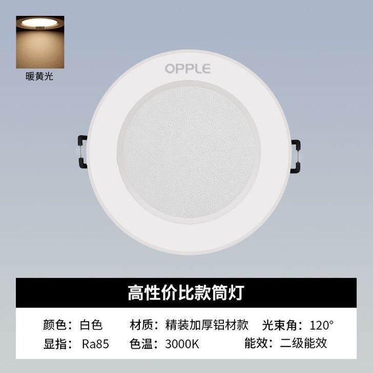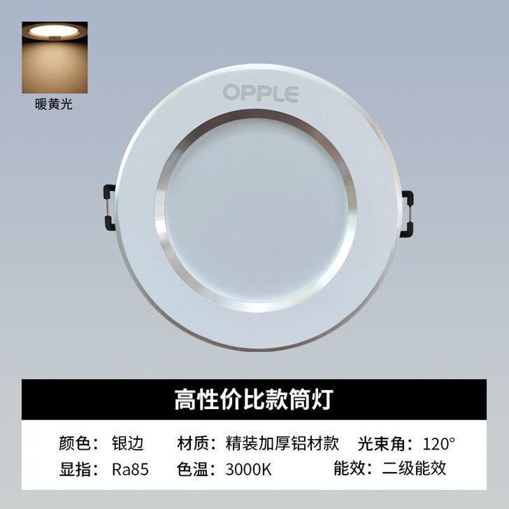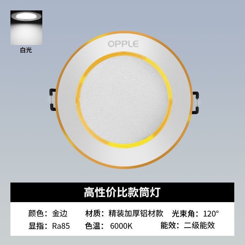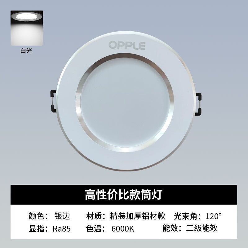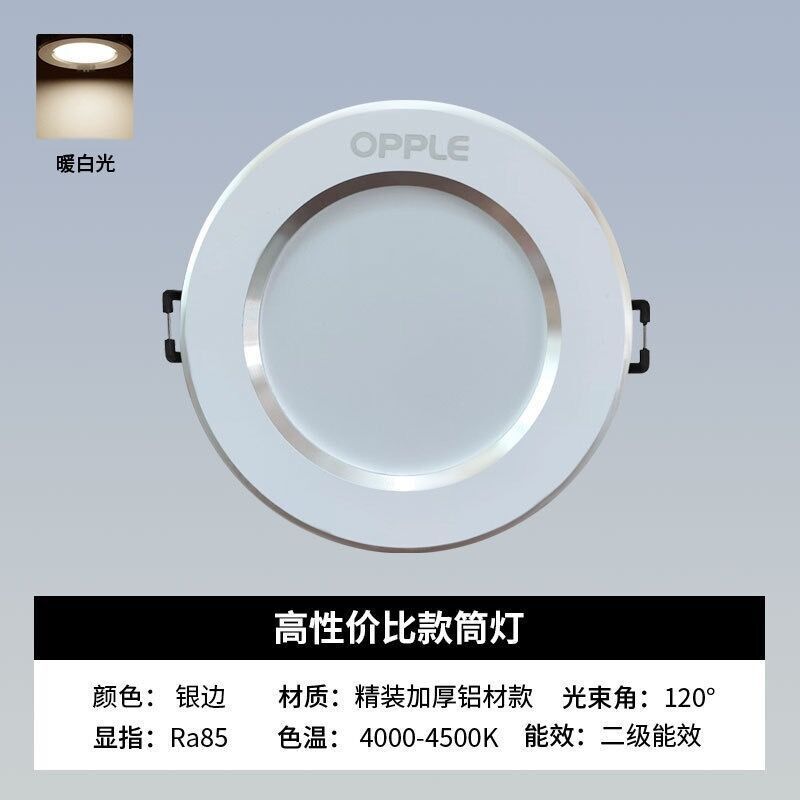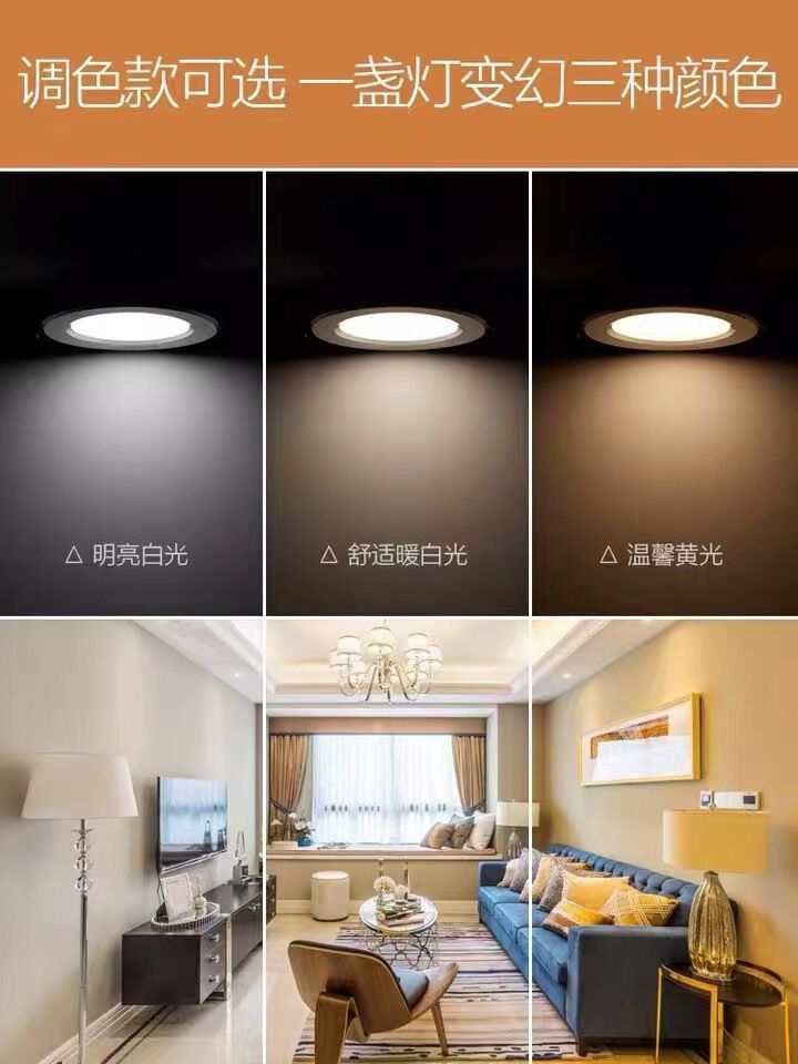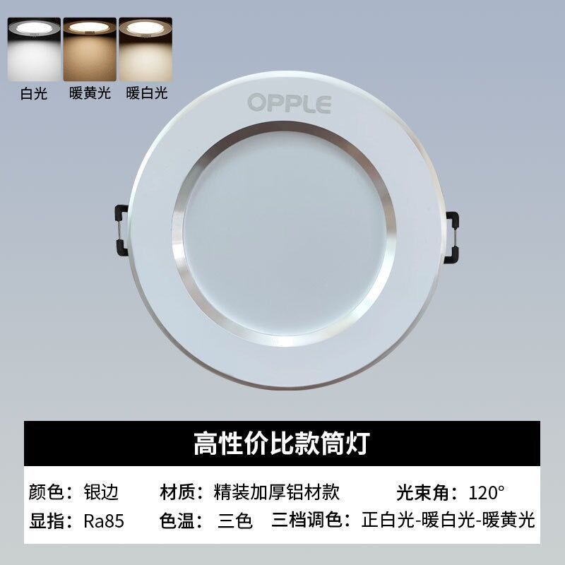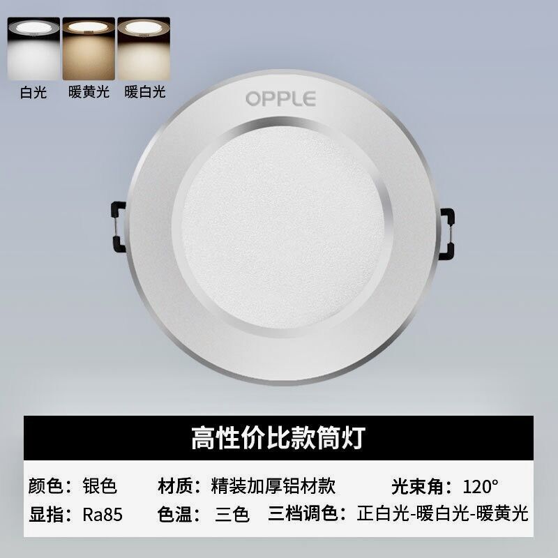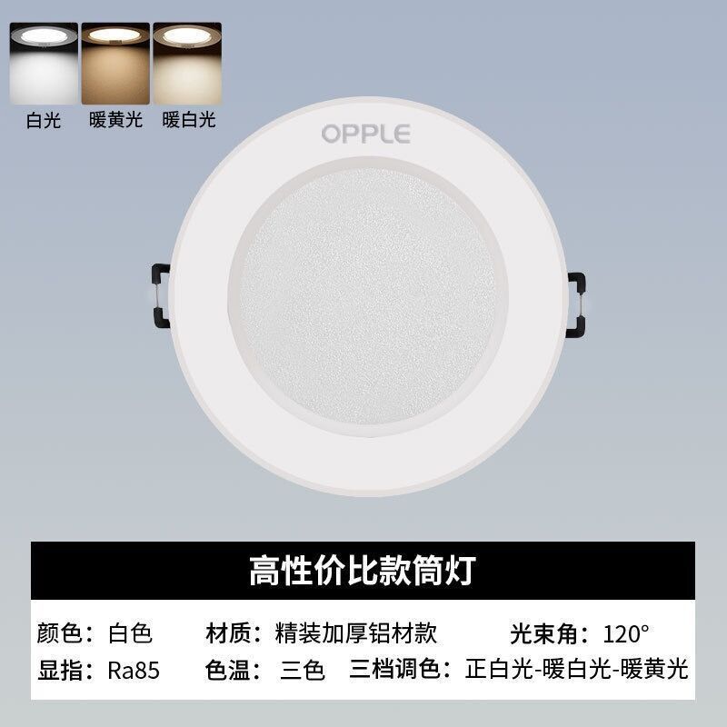 欧普筒灯led天花灯嵌入式三色变光6w8w家用客厅射灯2023新款孔灯