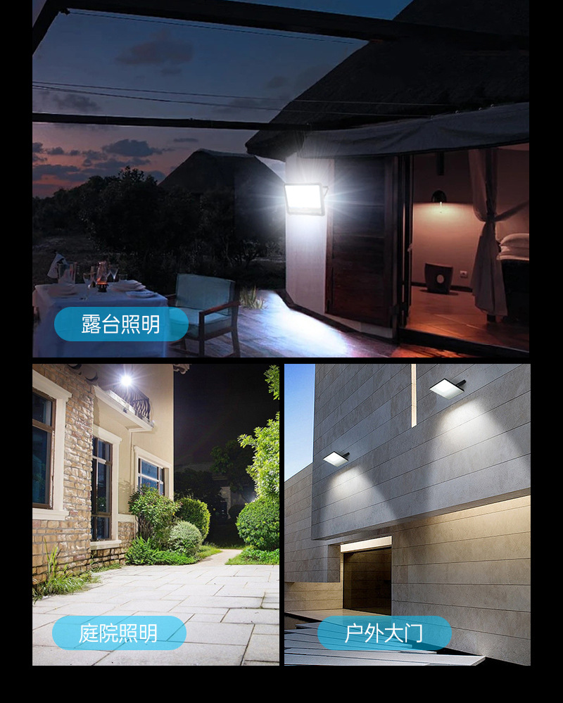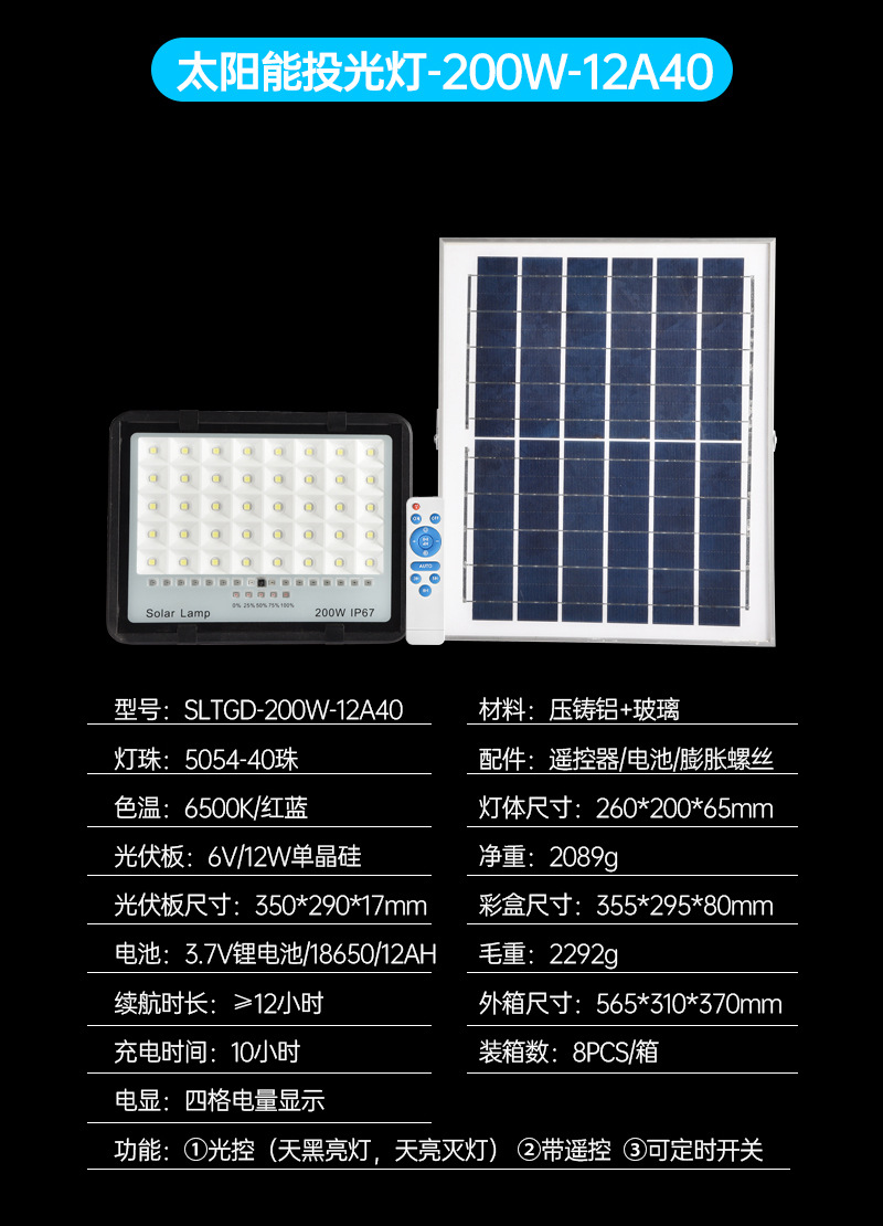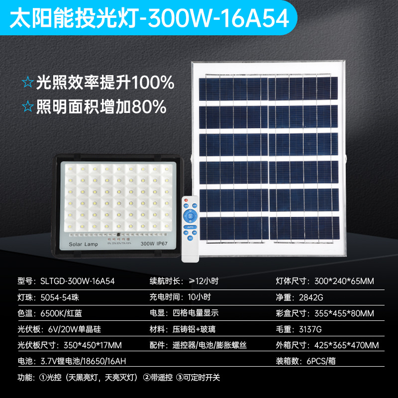厂家批发室外防水太阳能充电LED投光灯 户外高亮庭院照明灯