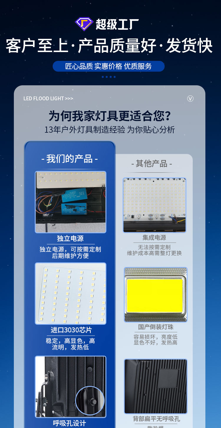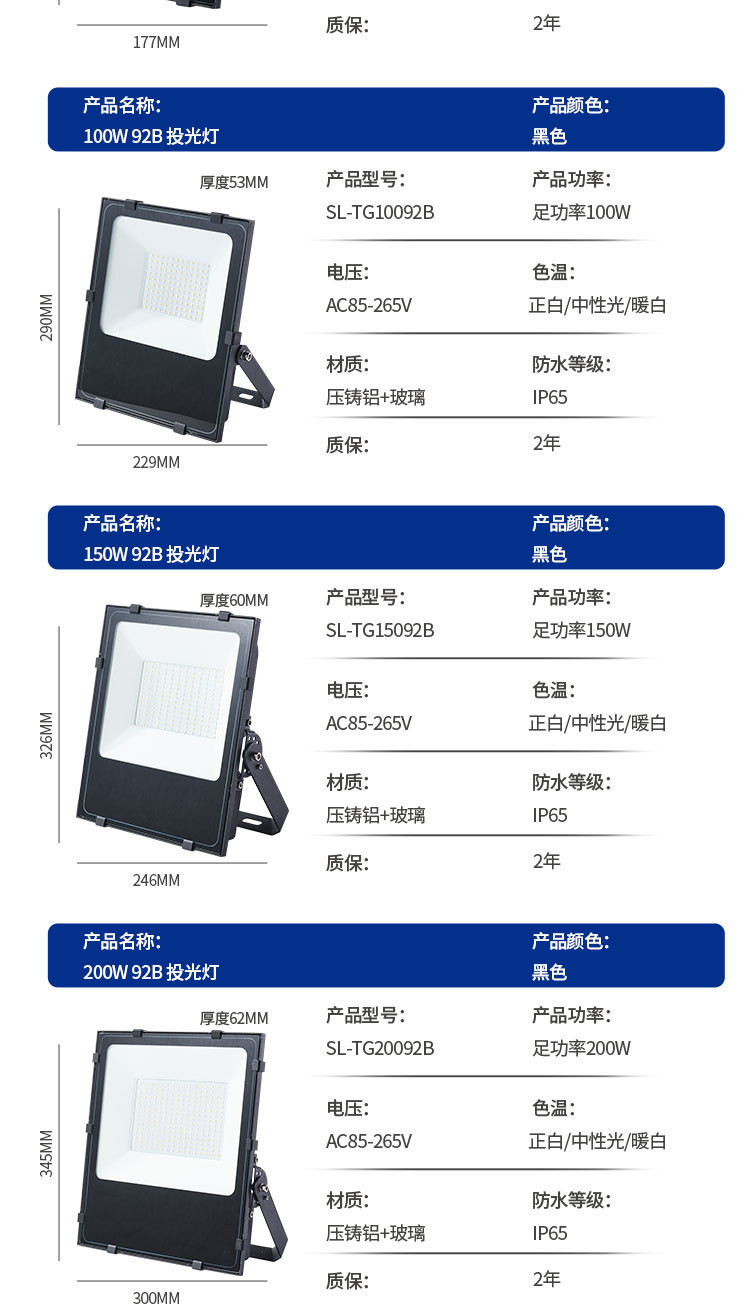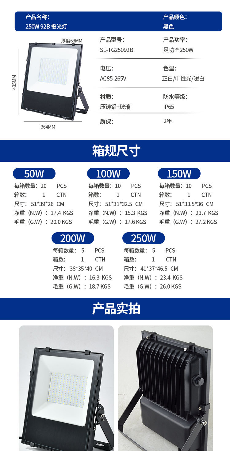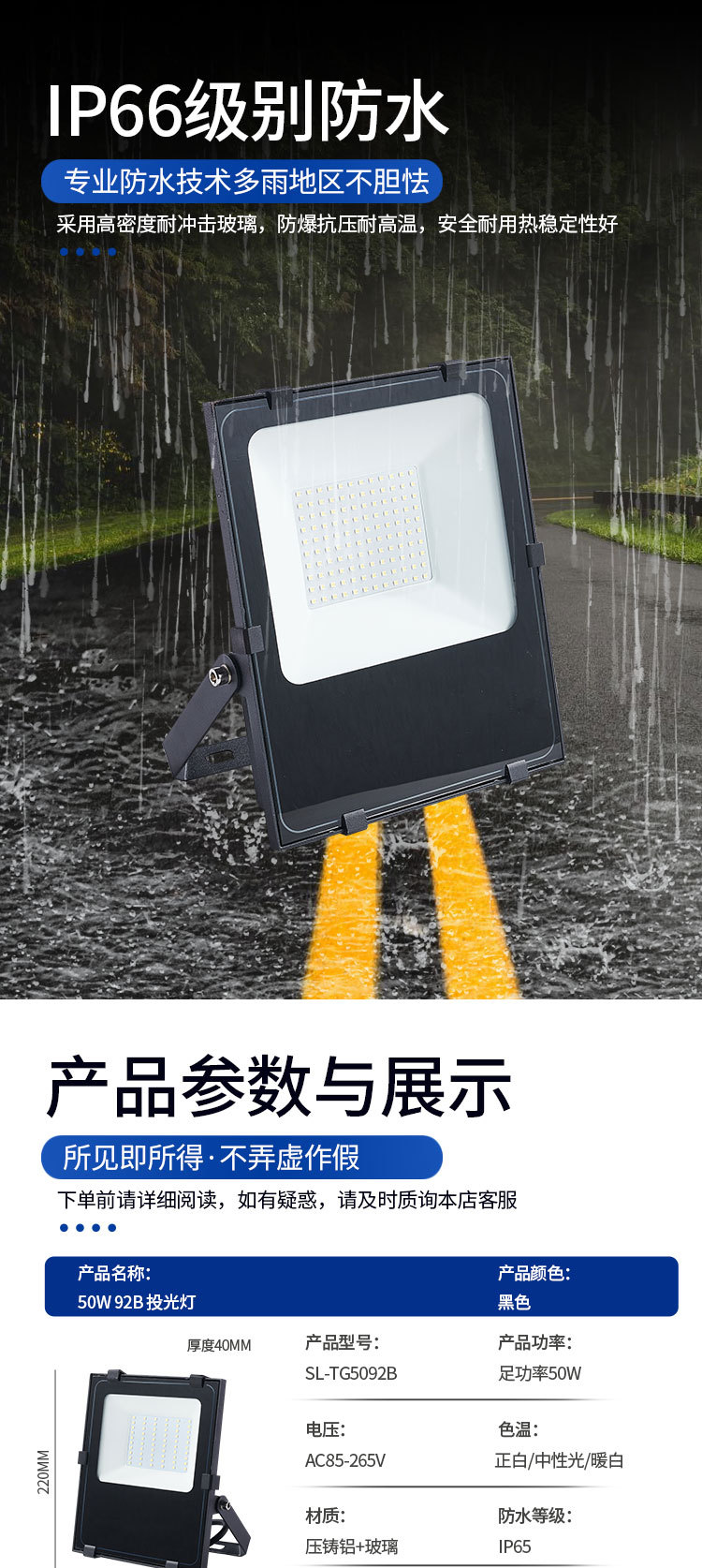 强光超亮防水50WLED投光灯室外投射球场户外照明灯足瓦泛光灯现货