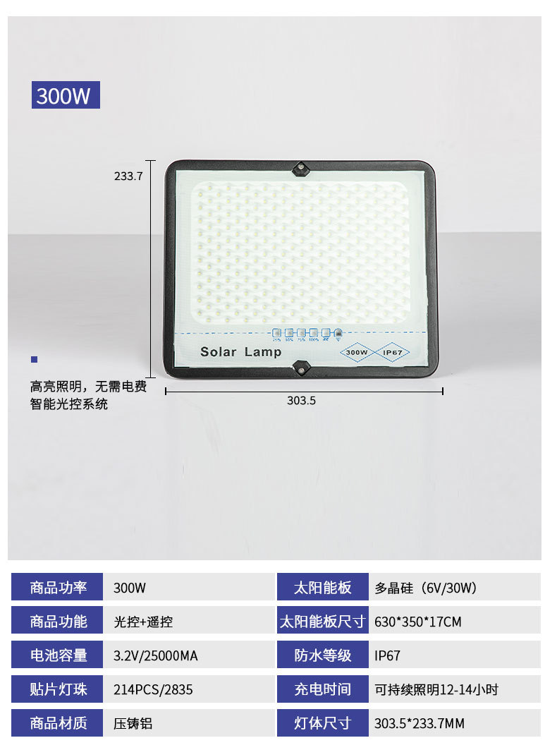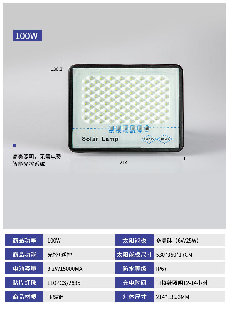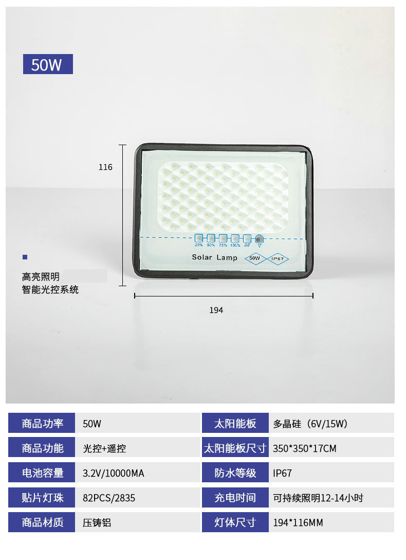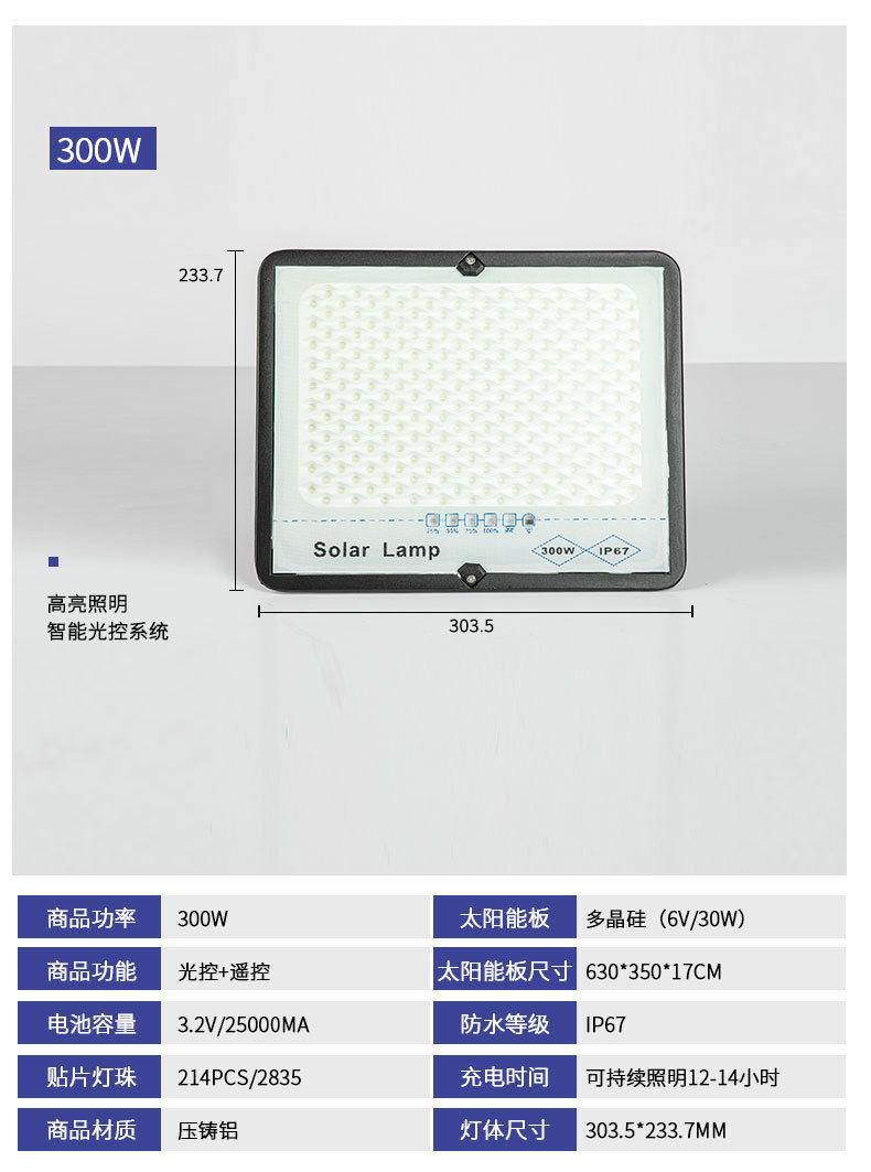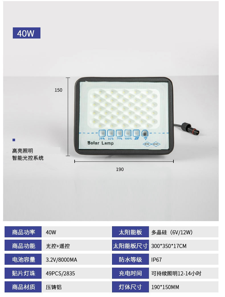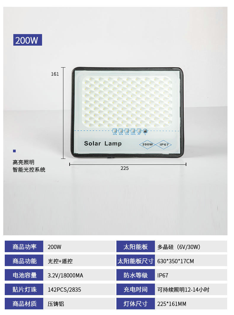 太阳能投光灯农村庭院LED高亮照明灯球场公园广场遥控定时投光灯