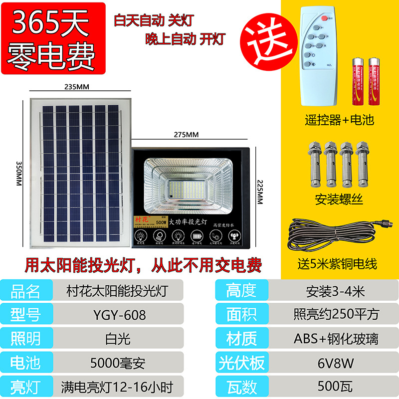 太阳能投光灯户外庭院灯新农村路灯LED大功率投光灯防水太阳能灯