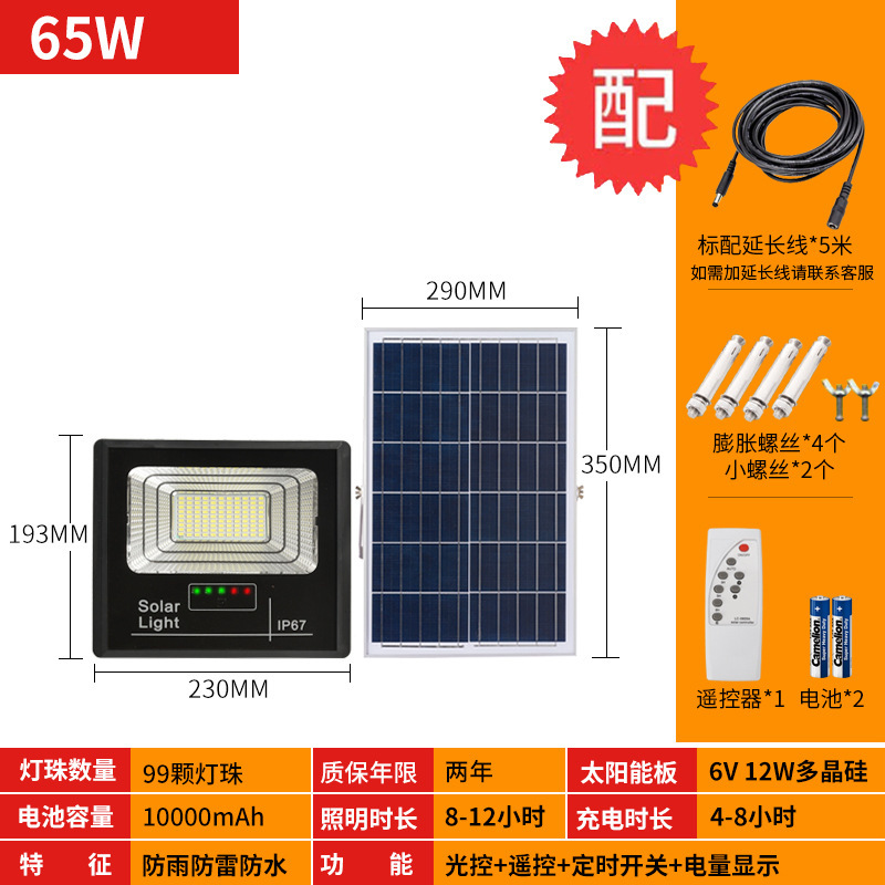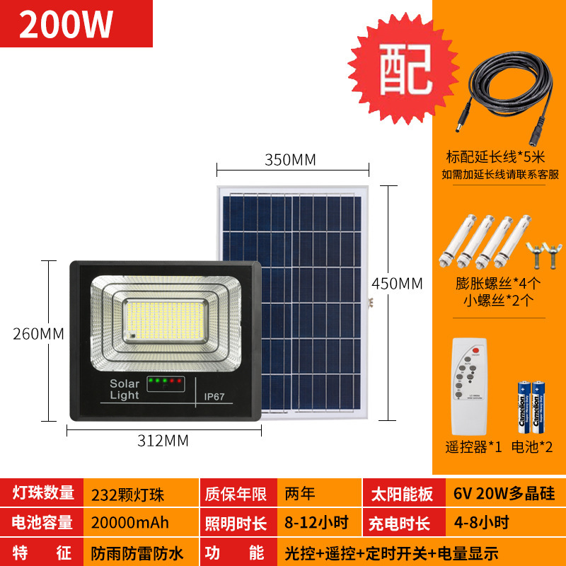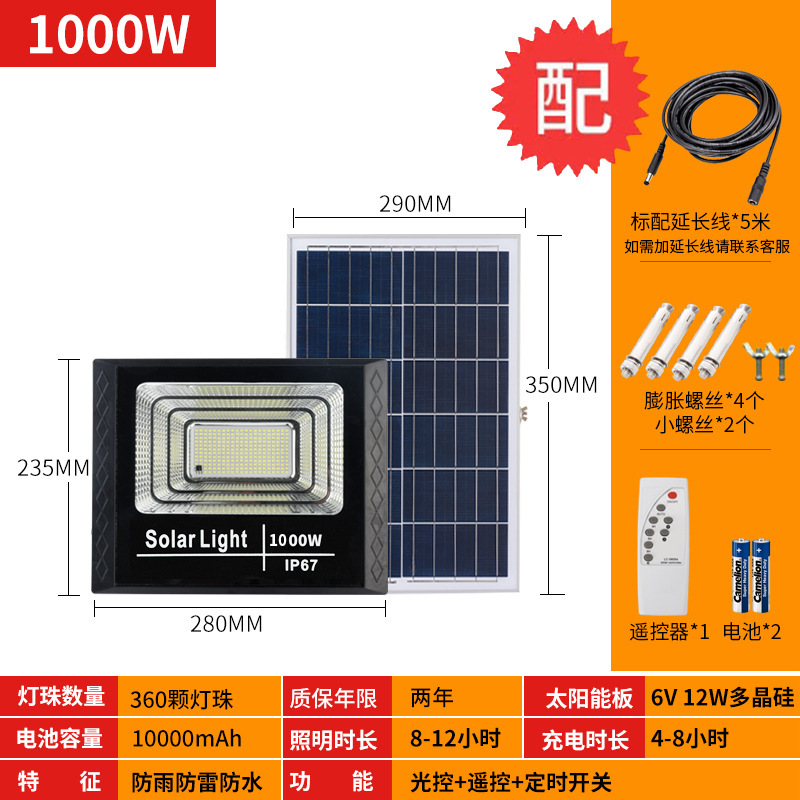 新款太阳能路灯户外LED照明灯 节能家用庭院灯高亮大功率投光灯