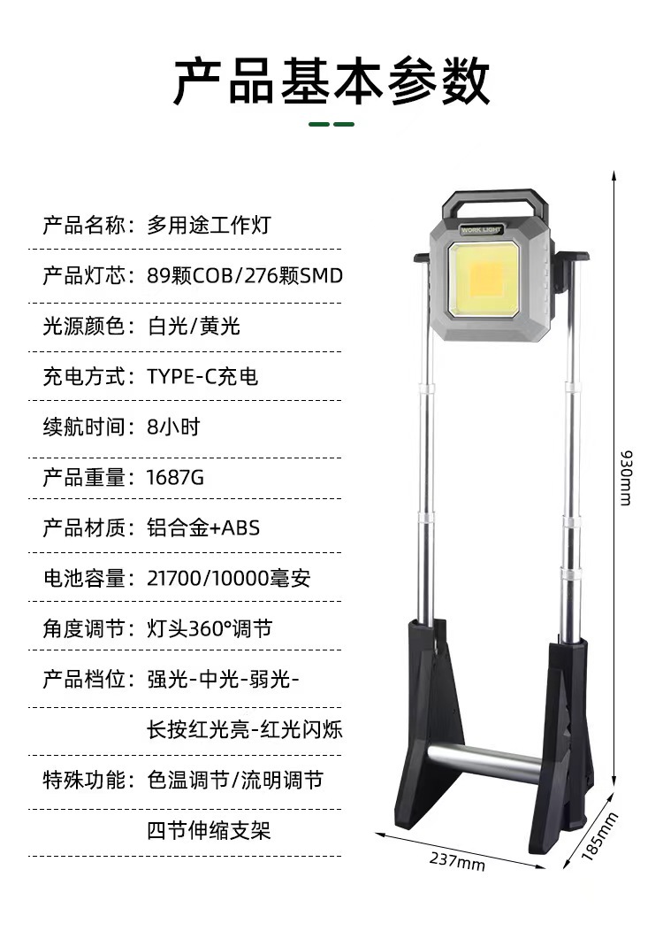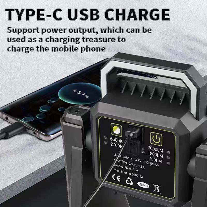 新款工地加班灯大功率灯超亮投光防水强光手提可充电式led户外灯