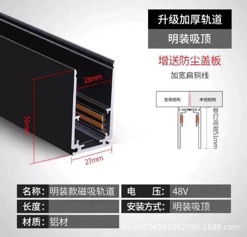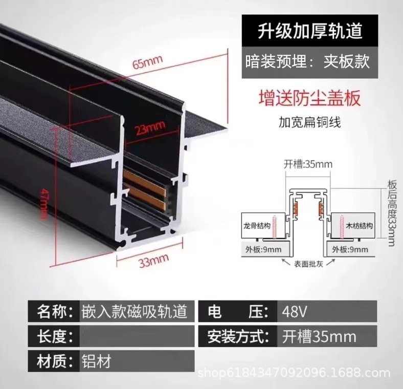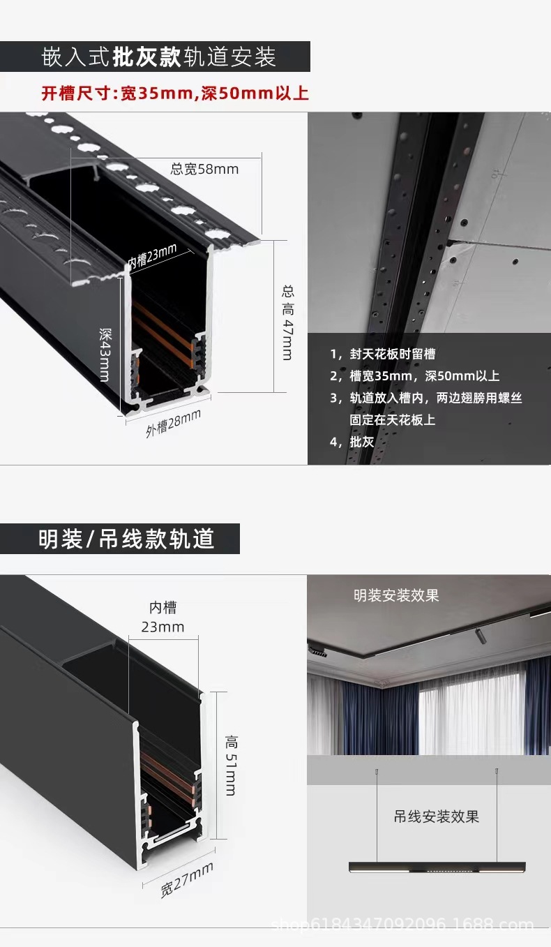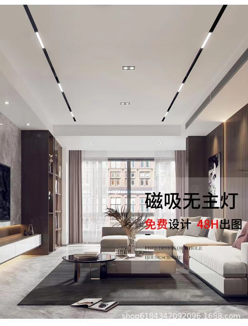 无主灯磁吸轨道灯嵌入式客厅家用磁吸灯暗装明装轨道条led轨道灯